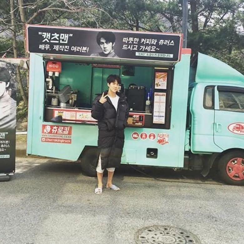 D.O. từng gửi một chiếc xe tải đầy bánh churro (món bánh rán vòng nổi tiếng ở Hàn) để ủng hộ Sehun và đoàn phim của Catman.