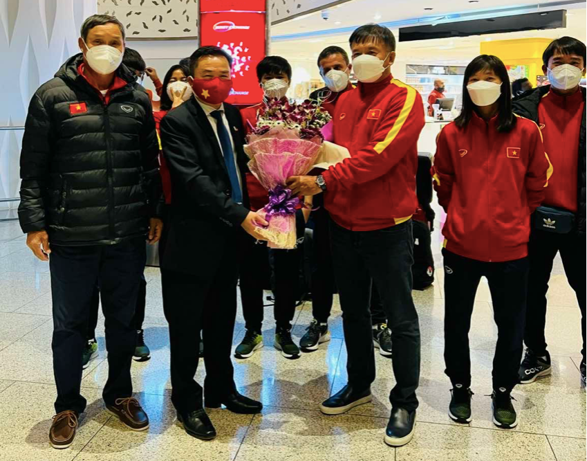 Nhóm 10 thành viên đầu tiên của đội tuyển nữ Việt Nam do trưởng đoàn Trương Hải Tùng và HLV trưởng Mai Đức Chung phụ trách đã di chuyển từ Tây Ban Nha (nơi đội tuyển tập huấn) từ ngày 15/1, quá cảnh ở Hà Lan, trước khi tiếp tục bay 8 tiếng đến Mumbai (Ấn Độ).