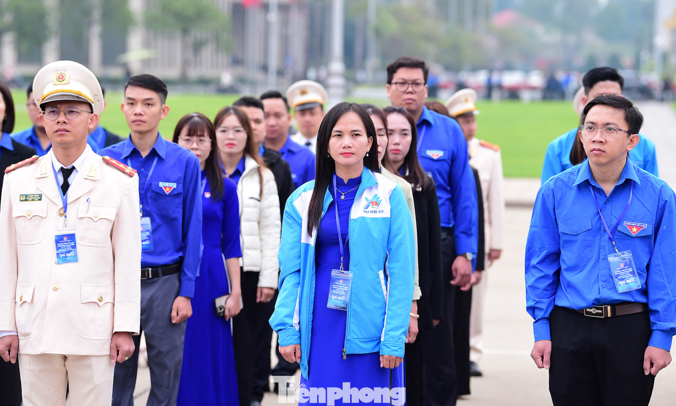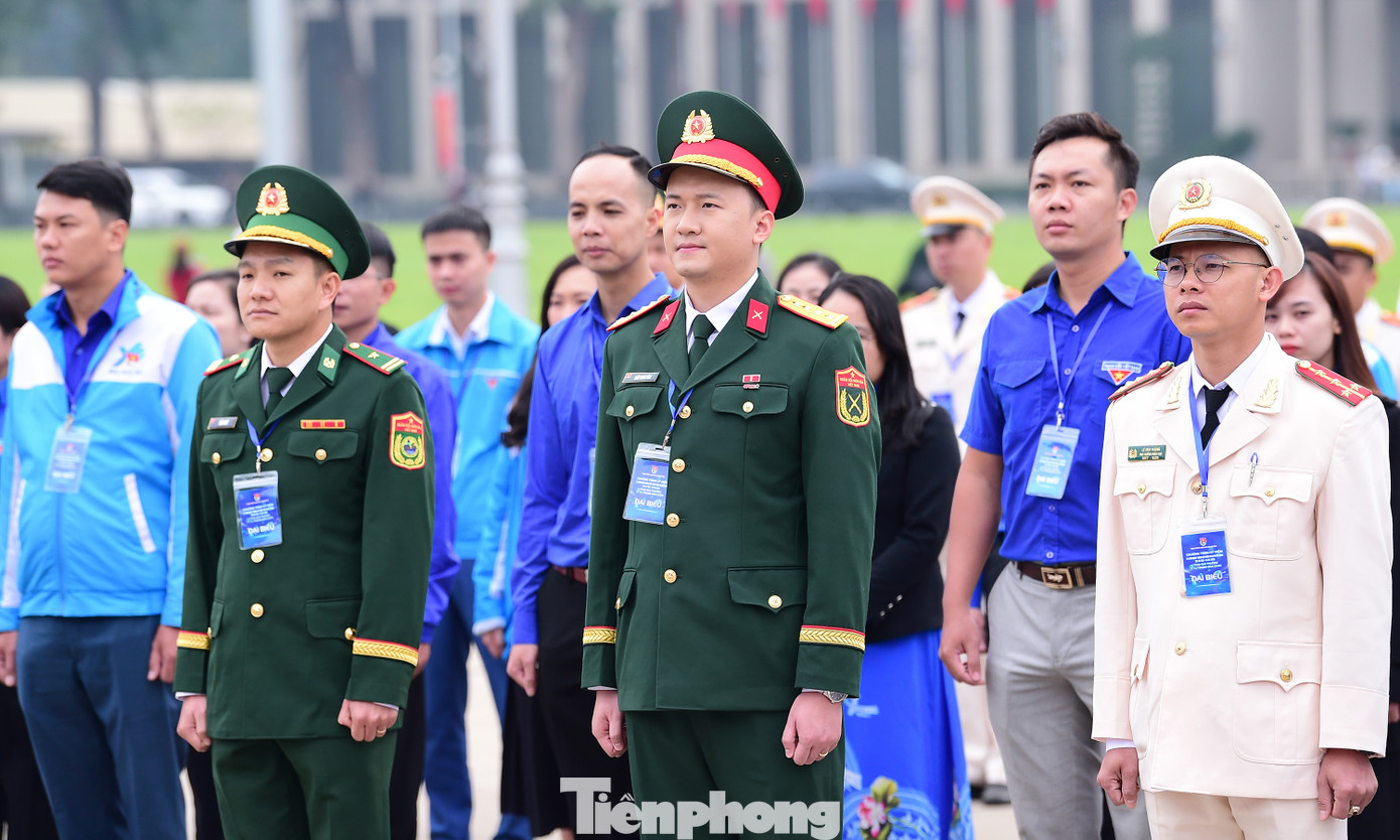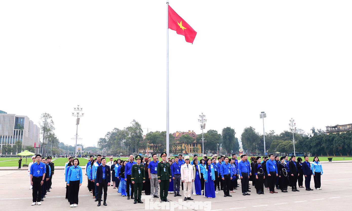 | Đoàn đại biểu Giải thưởng Lý Tự Trọng năm 2025 đặt vòng hoa và vào Lăng viếng Chủ tịch Hồ Chí Minh. Ảnh: Xuân Tùng |