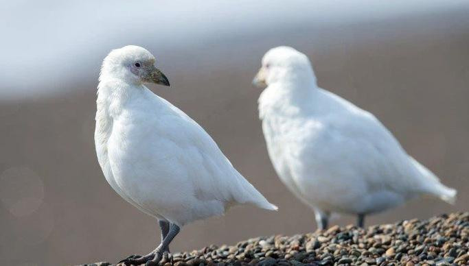 Chim Sheathbill tuyết là loài chim trông giống bồ câu, trắng phau và dũng cảm; đây là loài chim bản địa duy nhất sống trên bề mặt Nam Cực và là loài duy nhất sinh sản tại đây.
