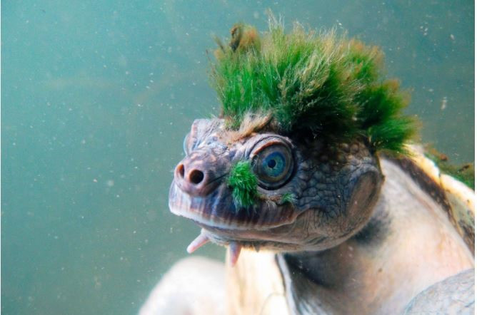 Rùa sông Mary với "mái tóc" dựng đứng màu xanh tạo thành từ sợi tảo mọc trên cơ thể được Hiệp hội Động vật học London (ZSL) xếp vào danh sách những loài bò sát dễ tổn thương nhất, Guardian hôm 11/4 đưa tin. Loài rùa dài 40 cm này chỉ sống trên sông Mary ở bang Queensland, Australia và có thể thở qua bộ phận sinh dục. Bản chất hiền lành biến chúng thành loài thú cảnh được nhiều người ưa chuộng.