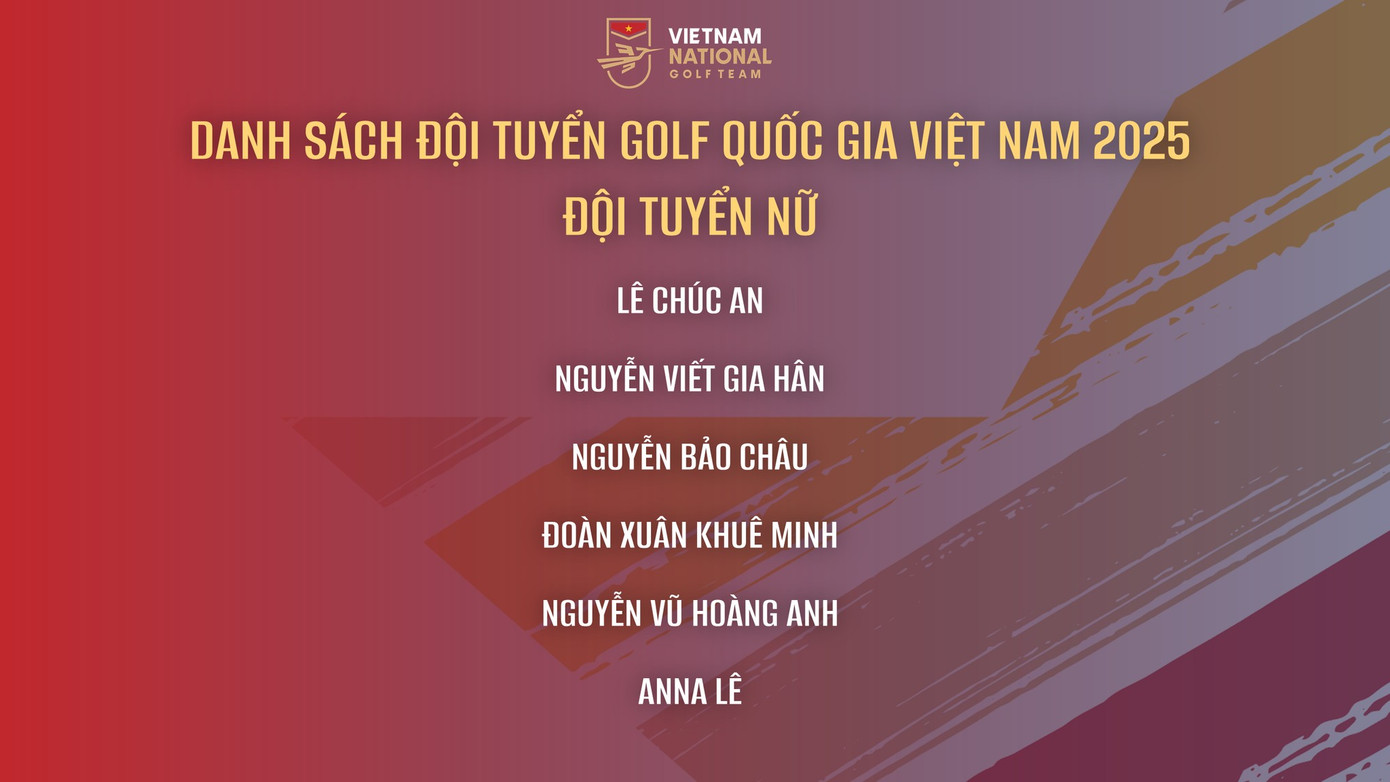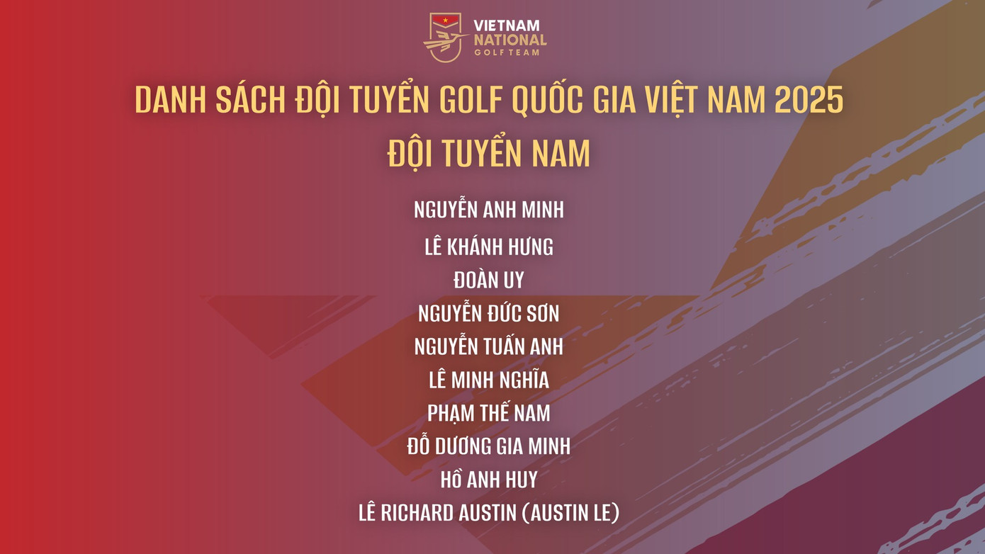 Theo đó, đội tuyển golf Việt Nam gồm 16 tuyển thủ ,trong đó có 10 nam và 6 nữ. Những gương mặt hàng đầu của golf việt Nam đều góp mặt như Nguyễn Anh Minh, Lê Khánh Hưng, Đoàn Uy, Nguyễn Đức Sơn, Lê Chúc An, Nguyễn Viết Gia Hân...Bên cạnh đó, đội U16 nữ có 4 golfer; đội U16 nam có 6 golfer; đội U13 nam có 6 golfer; đội U13 nữ có 4 golfer.