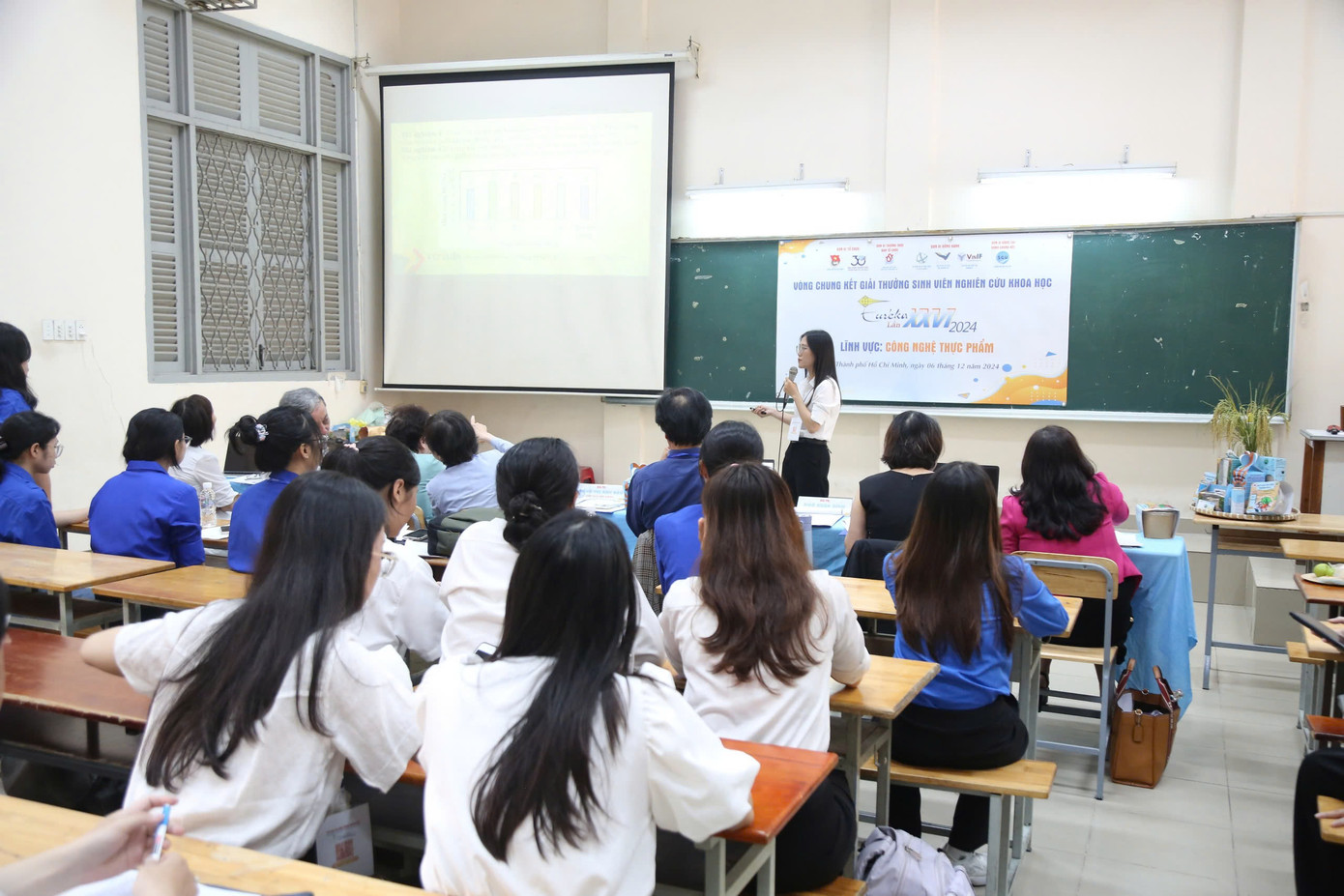 | Các nhóm đề tài bảo vệ trước Hội đồng Giám khảo. |