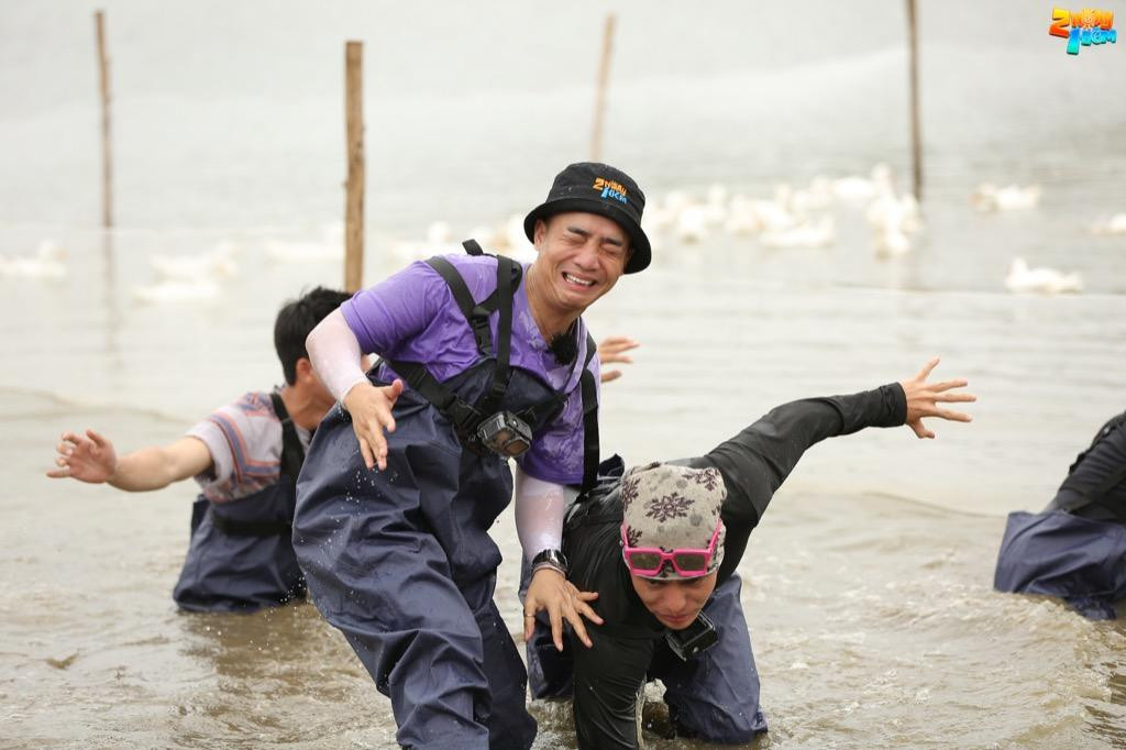 Tiếp nối màn bắt ngan khó nhằn, Dương Lâm còn đang ái ngại với việc “đầm” mình cùng bầy ngan chơi trò rượt bắt nên dùng cây loạng choạng bắt “chú ngan” có tên Cờ-rít. Dương Lâm không ngừng giang tay lắc lư qua lại làm mắt kính màu hồng “hàng hiệu” rớt xuống ao.