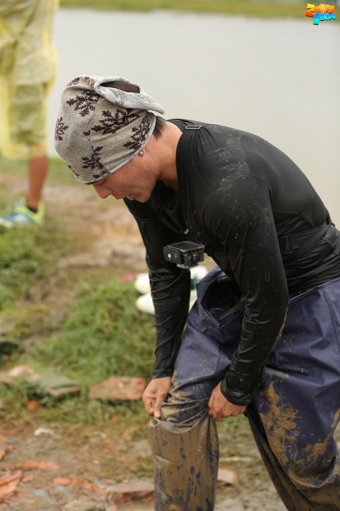 Sau khi phải lặn xuống ao tìm lại chiếc kính bị mất với vẻ mặt không thể tệ hơn. Dương Lâm leo lên bờ trong trạng thái “mơ hồ” vì ao nước quá “bốc mùi”. Nam diễn viên hóa “nàng tiên cá mắc cạn” tìm cách trút bớt phần nước bị lọt vào trong.