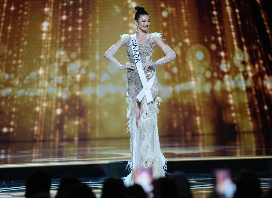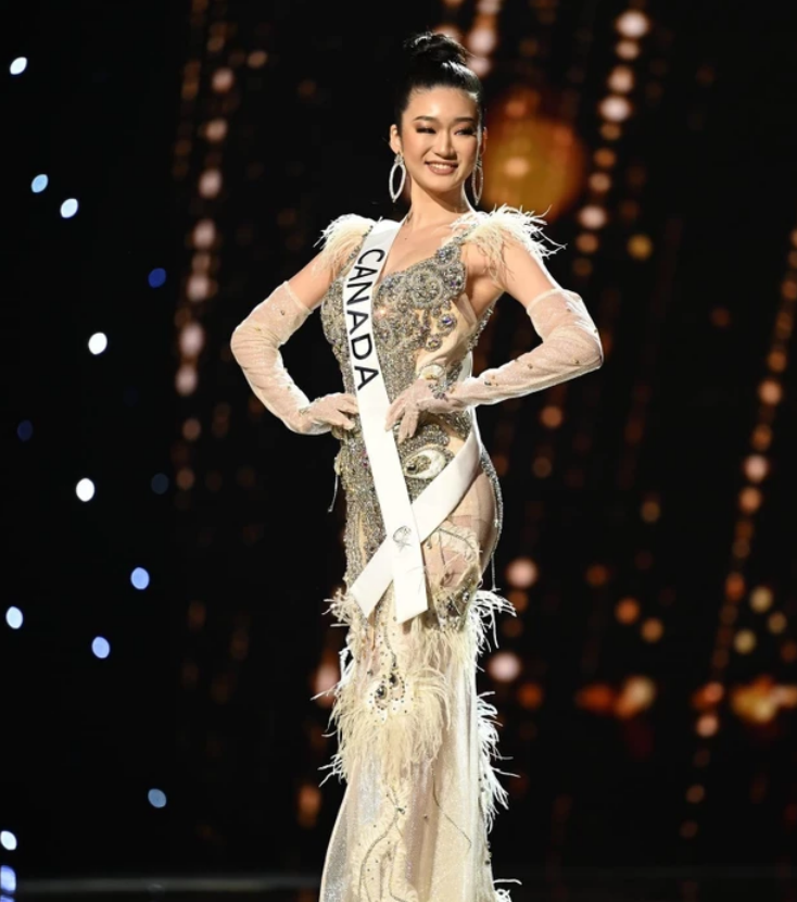 Trong thiết kế lấy cảm hứng từ chim khổng tước, Hoa hậu Hoàn vũ Canada 2022 Amelia Tu thu hút sự chú ý tuyệt đối với chiếc váy chiếm trọn ánh nhìn.
