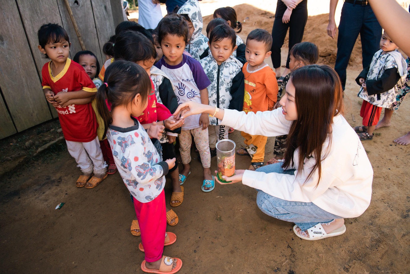 Bên cạnh việc trao tặng quà, 'mỹ nhân' này còn tham gia một số hoạt động, mang đến giá trị tinh thần cho các em nhỏ. Với sự thân thiện, gần gũi, Thùy Tiên nhận được rất nhiều sự chào đón, cảm mến từ người dân và các em. Tại đây, 'nàng Hậu' cũng tranh thủ ghi lại một số khoảnh khắc kỷ niệm cực dễ thương.