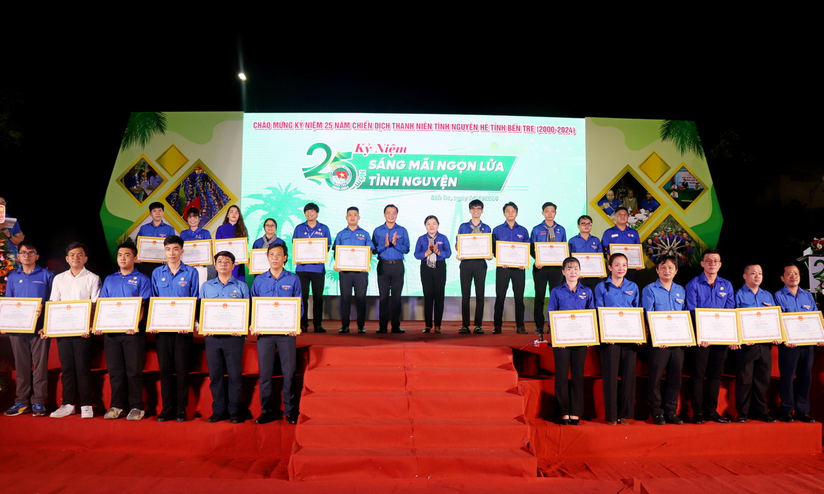 Bên cạnh đó, UBND tỉnh tặng Bằng khen cho 10 tập thể, 12 cá nhân, 3 hộ nuôi quân, 7 tập thể và cá nhân đã tích cực vận động, ủng hộ vật chất thực hiện Chiến dịch Thanh niên tình nguyện Hè tỉnh Bến Tre năm 2024. BCH Tỉnh Đoàn tặng Bằng khen cho 29 tập thể, 33 cá nhân hoàn thành xuất sắc nhiệm vụ trong Chiến dịch Thanh niên tình nguyện Hè năm 2024.