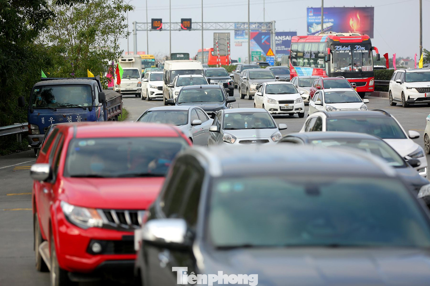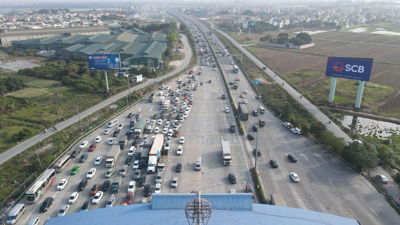 | Lượng xe tăng đột biến, dồn ứ tại điểm soát vé Pháp Vân - Cầu Giẽ. |
