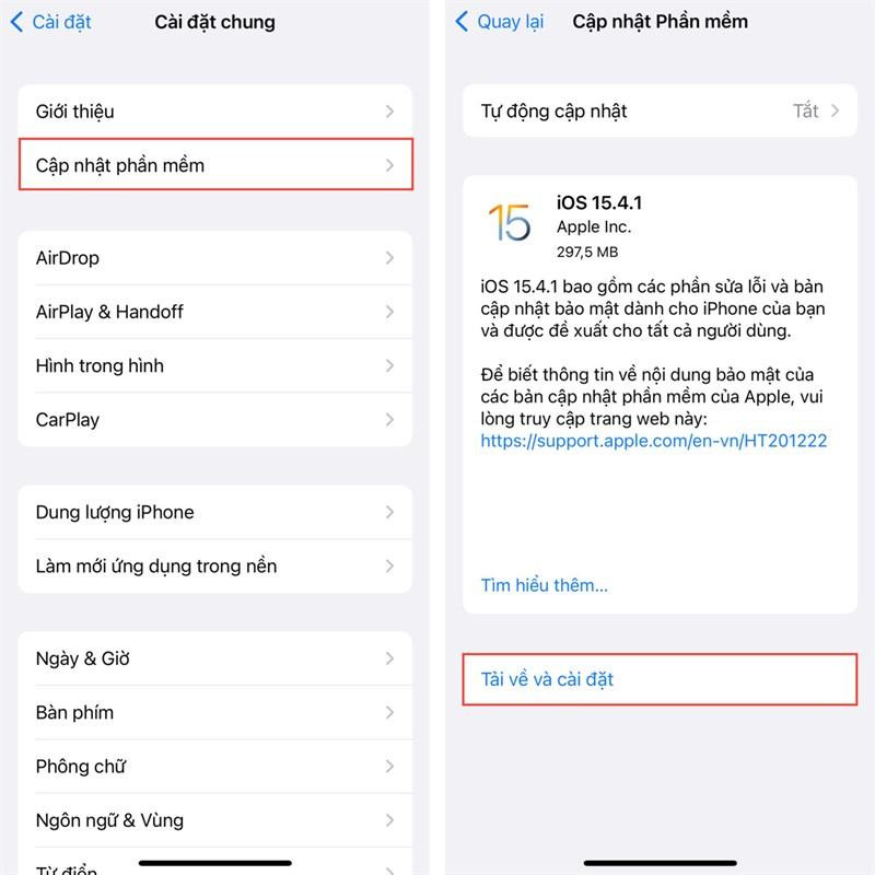 Hãy cập nhật lên iOS 15 cho iPhone bằng cách vào Cài đặt, chọn mục Cài đặt chung, sau đó chọn Cập nhật phần mềm. Kế tiếp, nhấn chọn mục Tải về & Cập nhật để hệ thống cập nhật iOS cho bạn nhé!