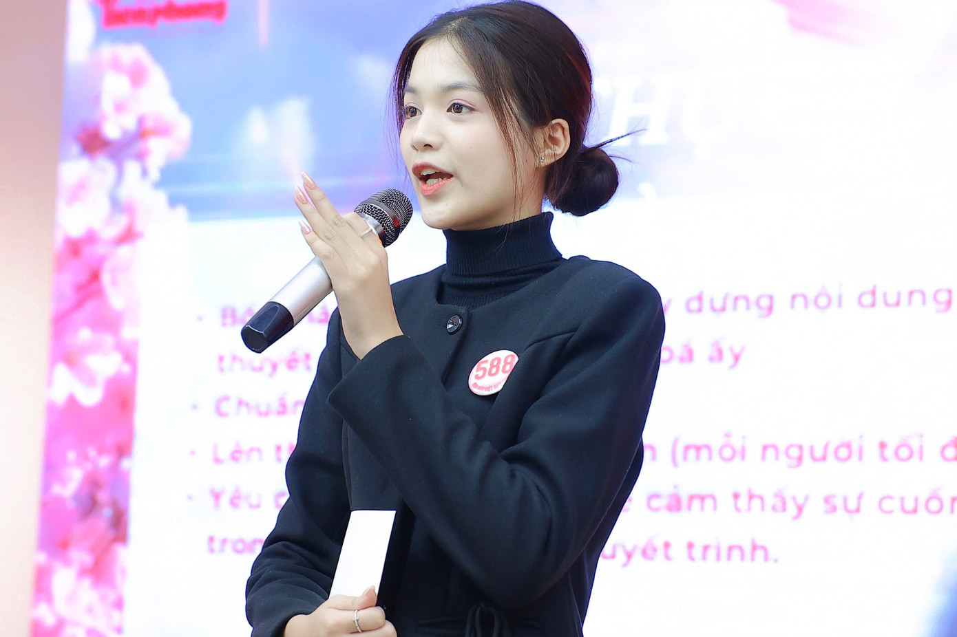 Trần Minh Thu (SBD 588), sinh năm 2005, đến từ Kon Tum là một trong những thí sinh đăng ký ghi danh Hoa hậu Việt Nam 2024 sớm nhất. Tại ngày hội tuyển sinh ở Học viện Ngoại giao, Minh Thu gây ấn tượng mạnh với danh hiệu Hoa khôi Đại học Thương Mại và chiều cao 1,77 m, nhan sắc nổi bật.