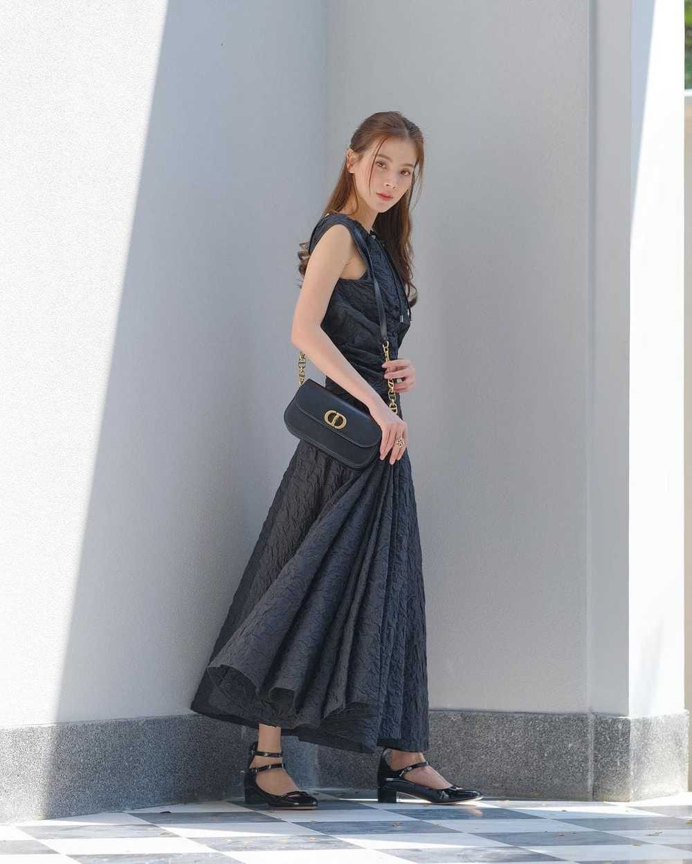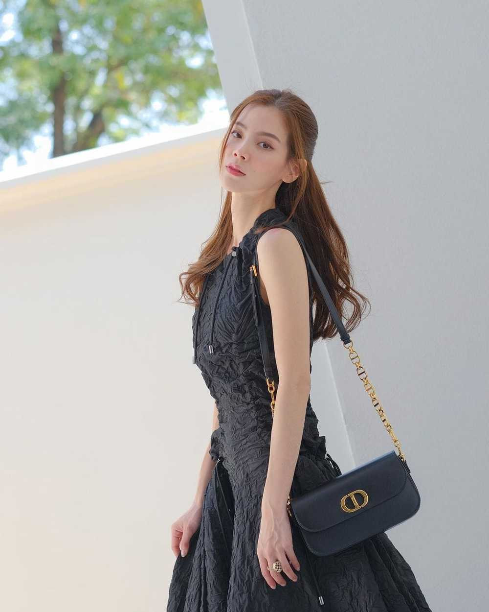 Nữ chính phim Chiếc Lá Cuốn Bay Baifern Pimchanok cũng từng khoe sắc trong mẫu váy đen có kiểu dáng cổ điển này. Vốn có vẻ đẹp ngọt ngào, khí chất tao nhã nên Baifern Pimchanok được khen rất hợp với các thiết kế của Dior.