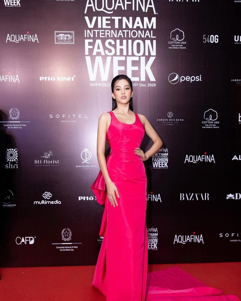 Hoa hậu Tiểu Vy mặc mẫu thiết kế này từ tháng 12/2020 trên thảm đỏ của Tuần lễ Thời trang Quốc tế Việt Nam.