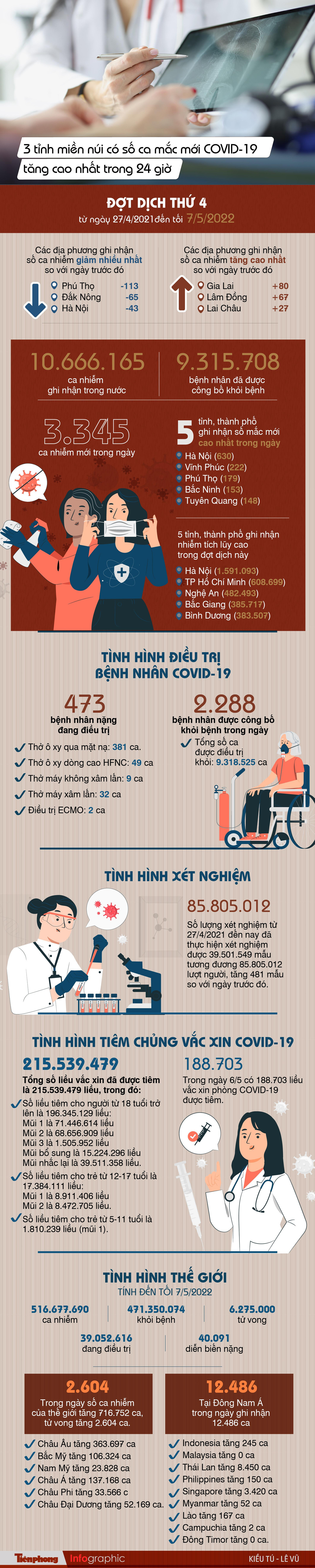 TPO - Kể từ đầu dịch đến nay Việt Nam có 10.673.915 ca nhiễm, đứng thứ 12/227 quốc gia và vùng lãnh thổ, trong khi với tỷ lệ số ca nhiễm/1 triệu dân, Việt Nam đứng thứ 104/227 quốc gia và vùng lãnh thổ (bình quân cứ 1 triệu người có 107.874 ca nhiễm).