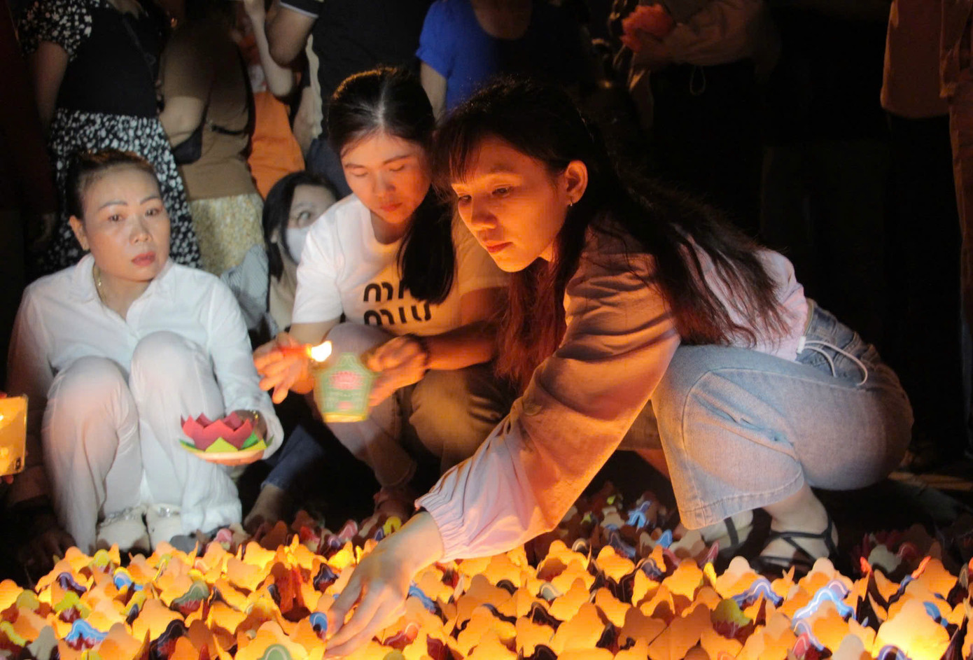 | Ngay từ chiều tối, dòng người đông đúc di chuyển từ chùa Kỳ Viên Trung Nghĩa (phường Vạn Thạnh, TP. Nha Trang) đổ về hướng sông Cái cùng hòa vào không khí hân hoan, rộn ràng của buổi lễ. |
