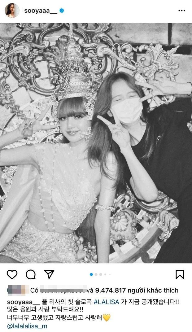 Jisoo cũng có một bức hình đã thu hút tới 9,4 triệu người thích sau thời gian ngắn đăng tải. Điều đặc biệt là bức hình này cũng liên quan đến Lisa, là ảnh chụp khi Lisa đến phim trường MV LALISA để cổ vũ cô em út.