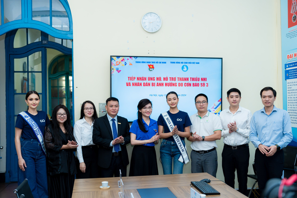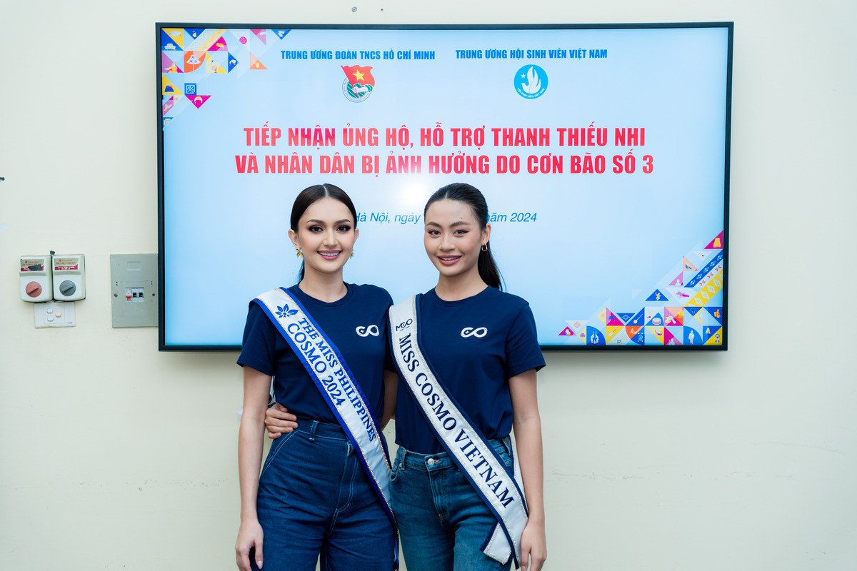 Miss Cosmo Vietnam 2023 Bùi Thị Xuân Hạnh và Miss Cosmo Philippines Maria Ahtisa Manalo đã cùng BTC Miss Cosmo đến văn phòng Trung ương Đoàn TNCS Hồ Chí Minh trao tặng số tiền 400 triệu đồng nhằm hỗ trợ thanh thiếu nhi và nhân dân khắc phục hậu quả ảnh hưởng do bão Yagi.