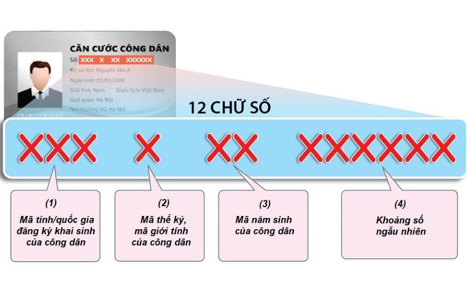 Mã số căn cước công là số định danh cá nhân được cấp cho người dân từ thời điểm đăng ký khai sinh gồm 12 số, có cấu trúc gồm: