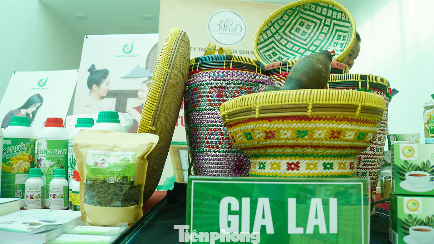 | Lãnh đạo Trung ương, địa phương tham quan sản phẩm khởi nghiệp. Ảnh: Hòa Hội |