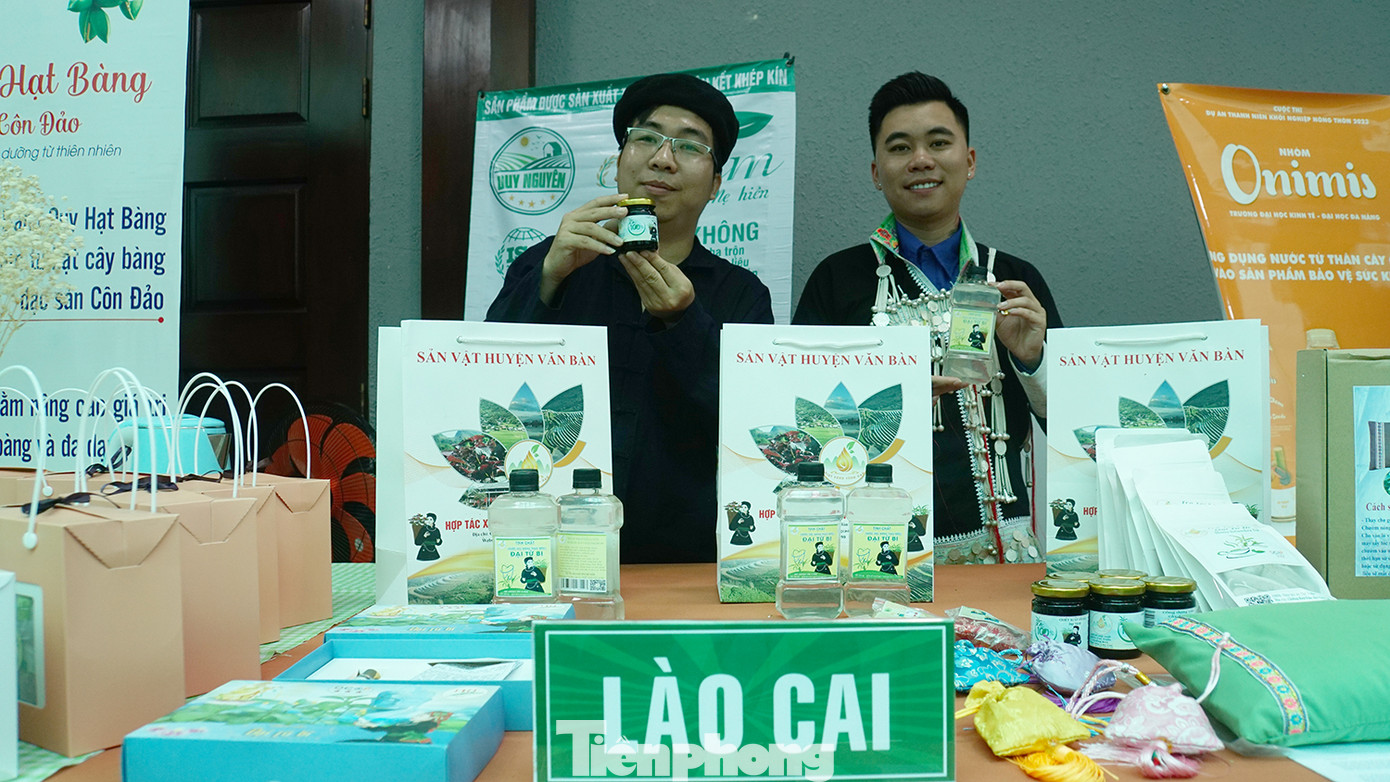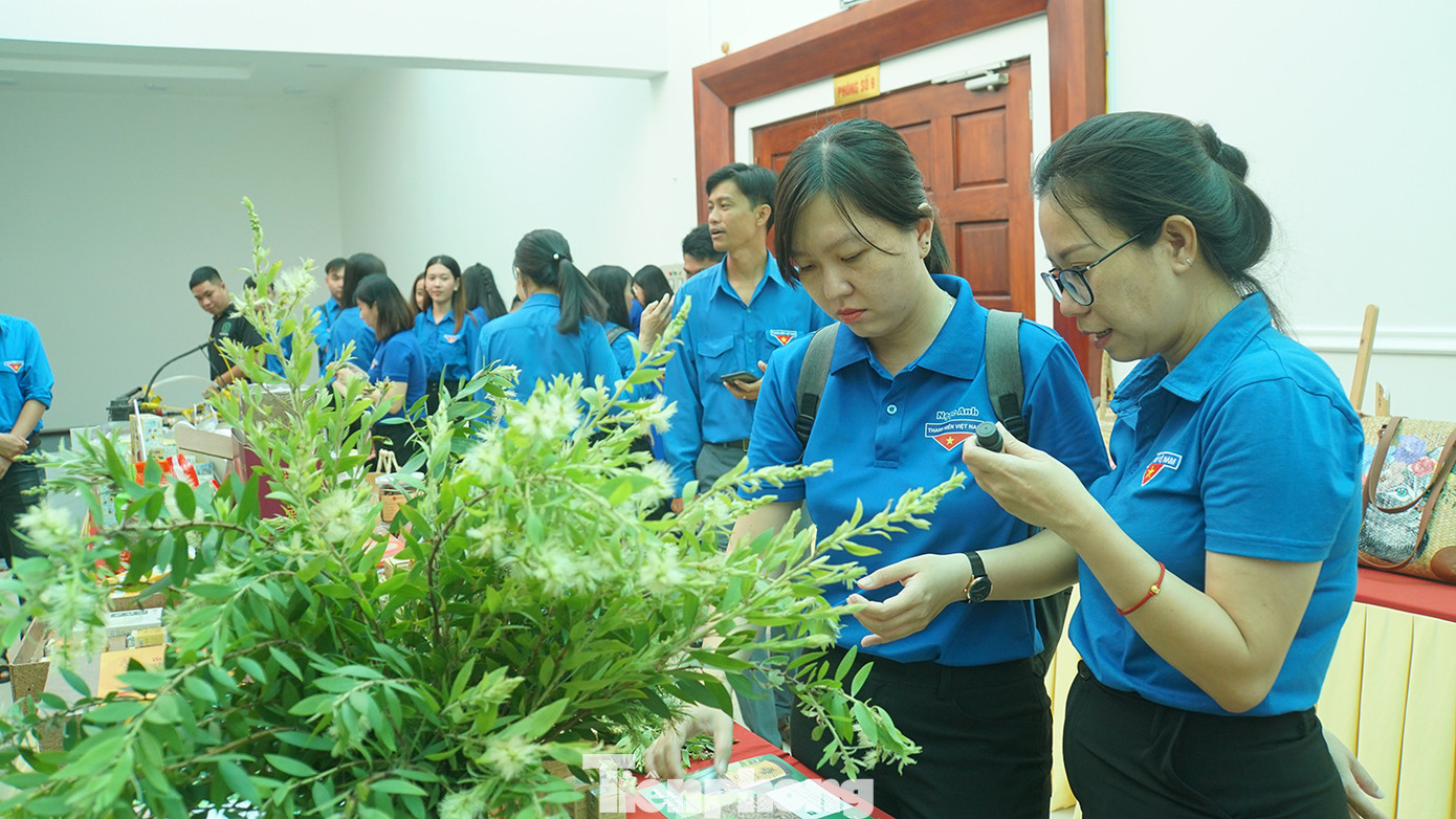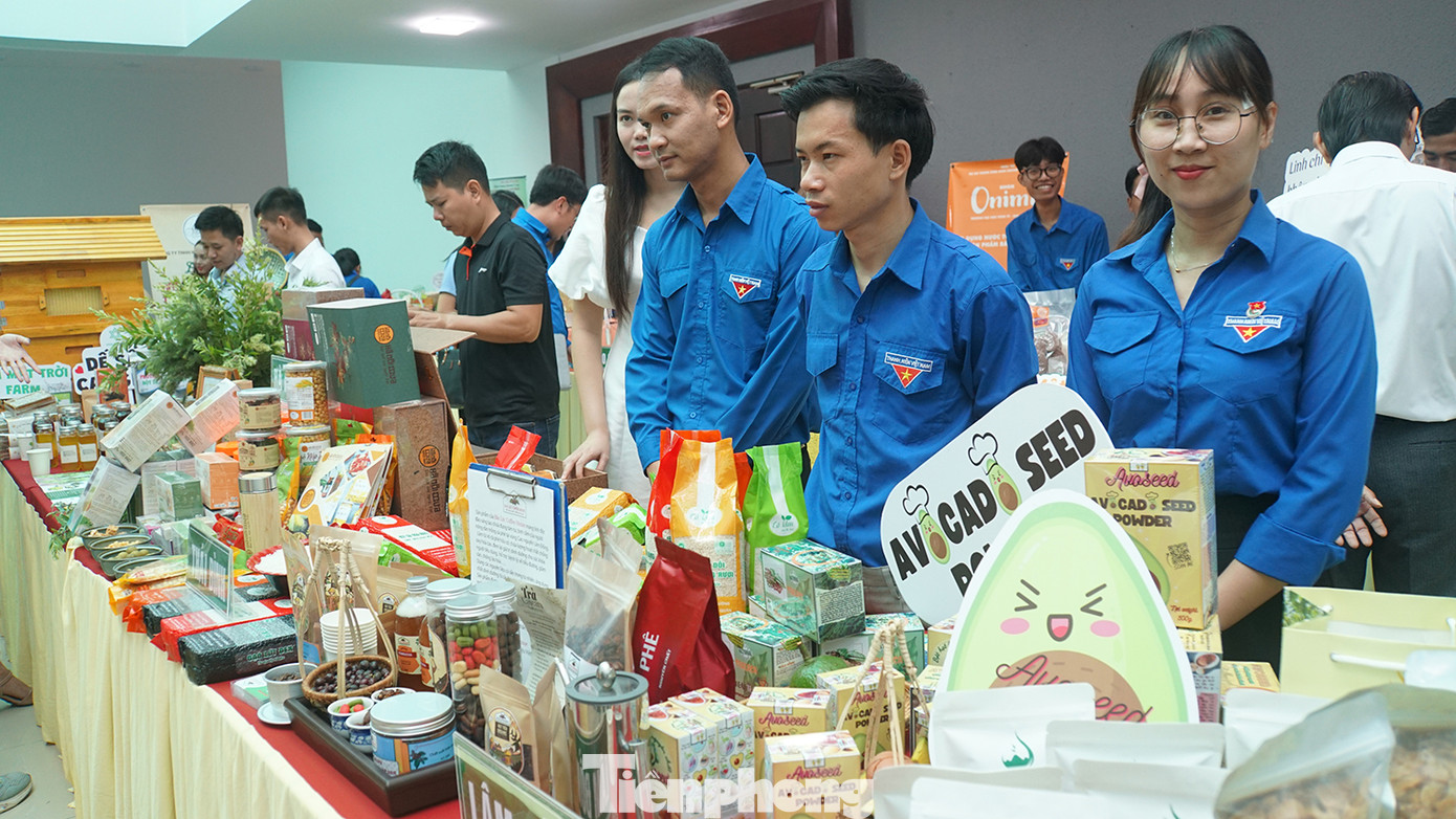 | Anh Ngô Văn Cương - Bí thư Trung ương Đoàn tham quan sản phẩm khởi nghiệp của thanh niên. Ảnh: Hòa Hội |
