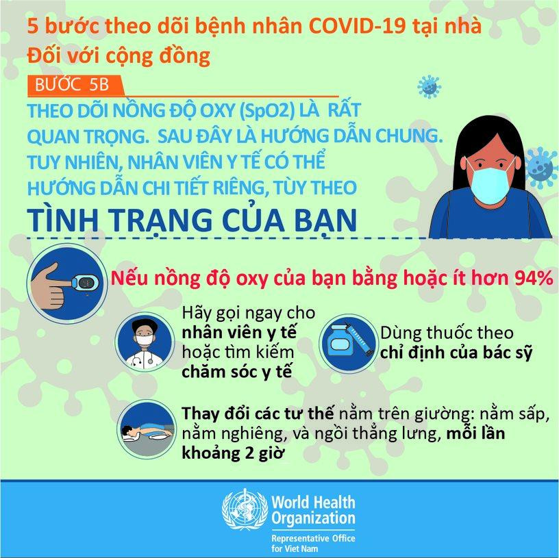 TPO - Dưới đây là khuyến cáo của Tổ chức Y tế Thế giới tại Việt Nam về 5 bước theo dõi bệnh nhân COVID-19 tại nhà.