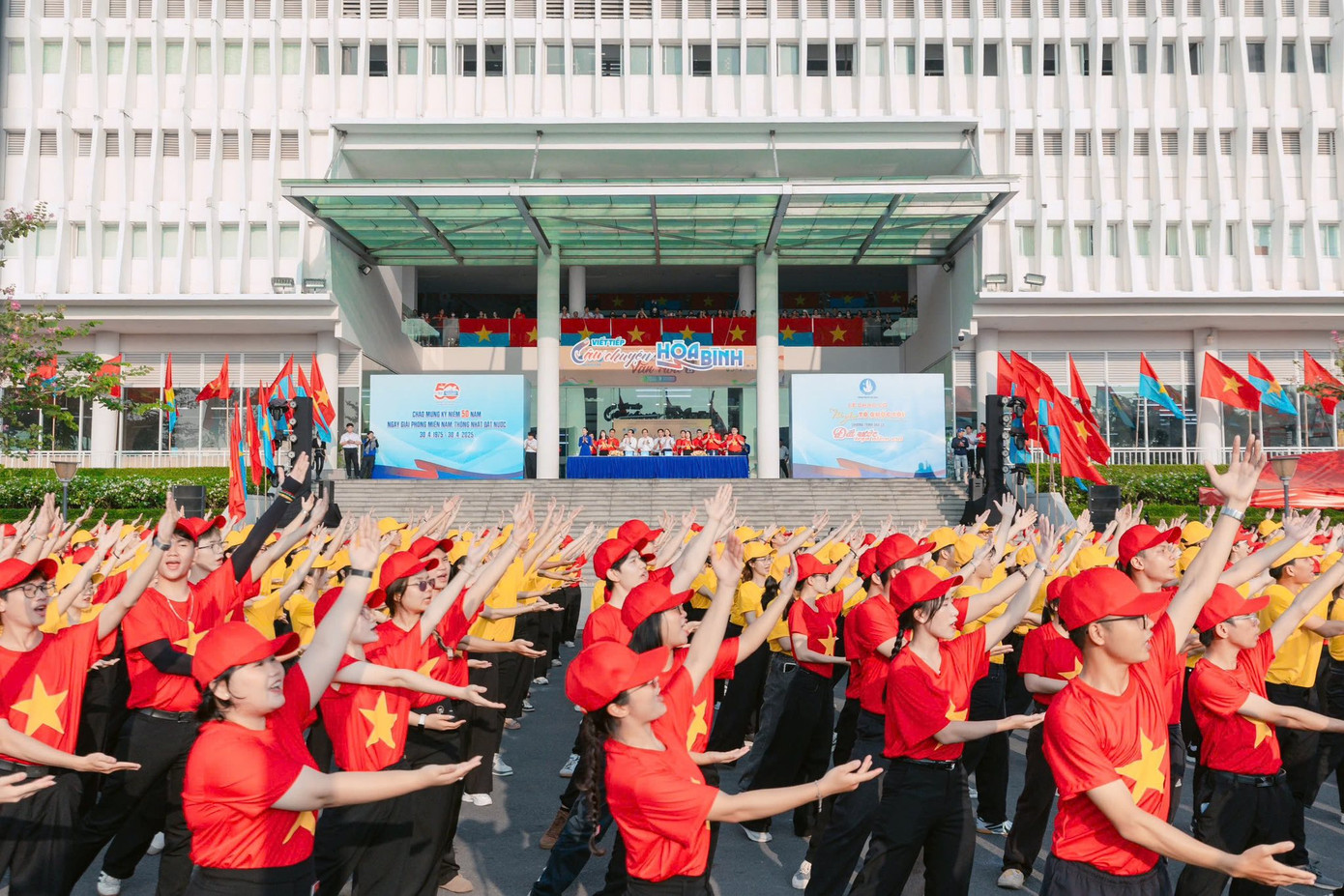 | 5.000 sinh viên TPHCM đồng diễn, hòa ca "Đất nước trọn niềm vui". |