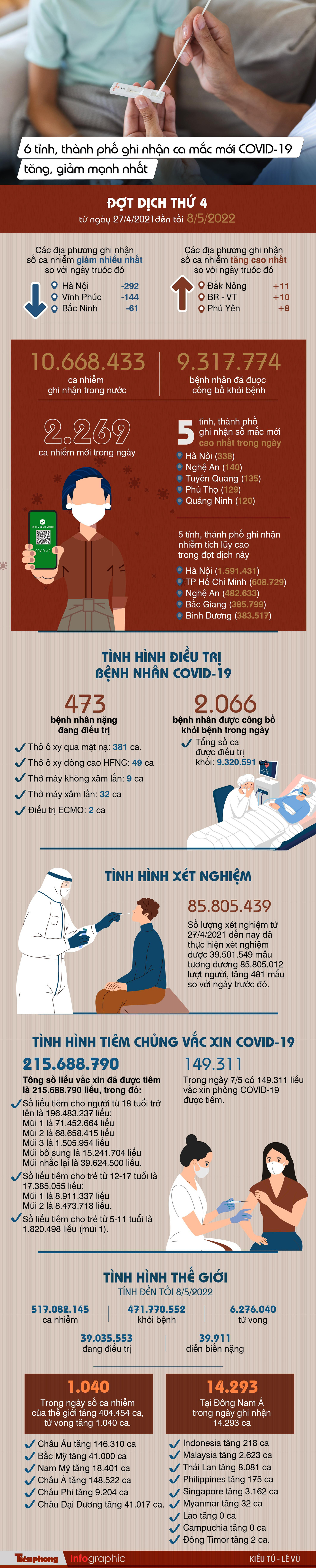TPO - Kể từ đầu dịch đến nay Việt Nam có 10.676.184 ca nhiễm, đứng thứ 12/227 quốc gia và vùng lãnh thổ, trong khi với tỷ lệ số ca nhiễm/1 triệu dân, Việt Nam đứng thứ 104/227 quốc gia và vùng lãnh thổ (bình quân cứ 1 triệu người có 107.897 ca nhiễm).