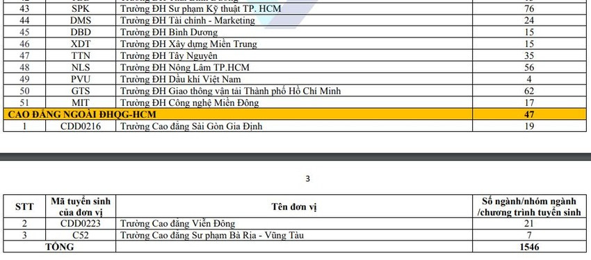 Tổng số ngành học/chương trình mà các thí sinh được chọn khi đăng ký xét tuyển lên đến 1.546 ngành/chương trình học.