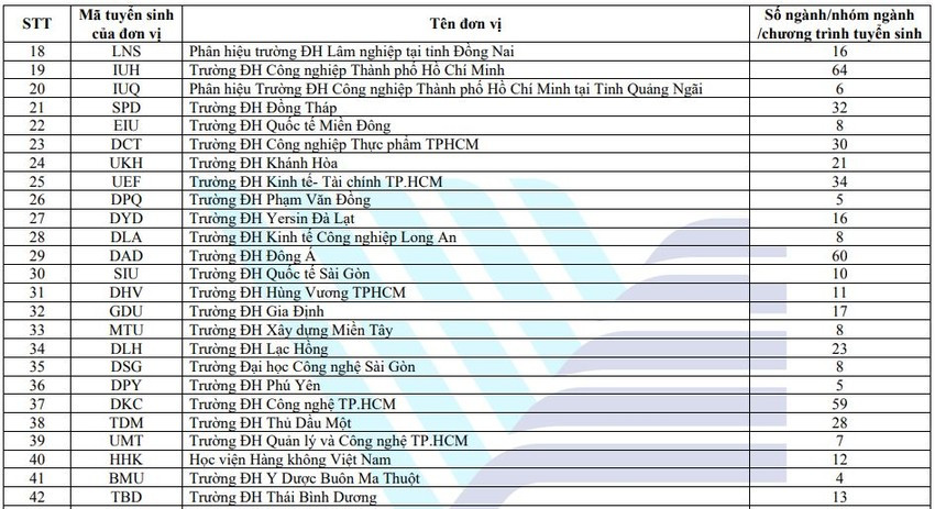 | Các trường đại học, cao đẳng tham gia xét tuyển chung kết quả kỳ thi Đánh giá năng lực. |