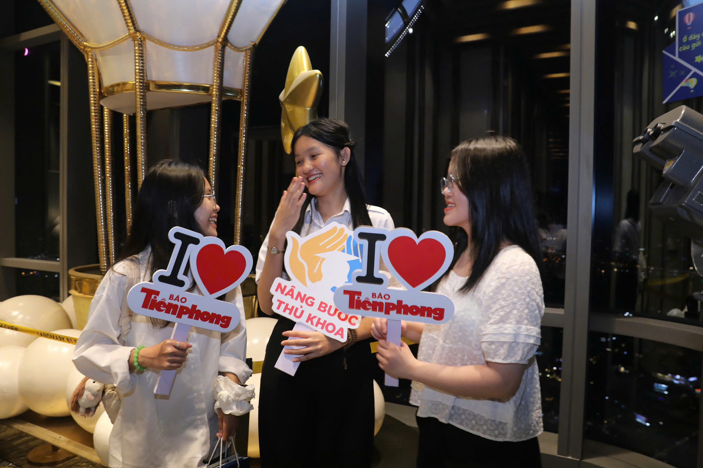 Trương Hải Ny tranh thủ lưu giữ những khoảnh khắc tại đây. Hải Ny chia sẻ: “Đây là lần đầu tiên mình được đứng ở độ cao và ngắm cảnh như vậy, khung cảnh rất là hoa lệ rất khác ở quê mình. Nhìn thấy cảnh thành phố, mình mong là tương lai bản thân có thể tự mình đưa cả gia đình đến đây và ngắm nhìn". (Ảnh: Duy Anh)
