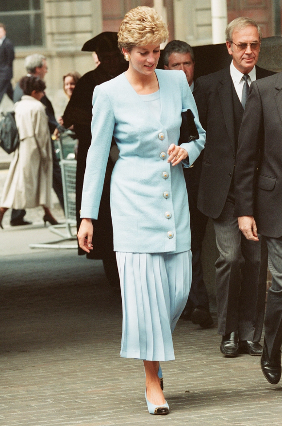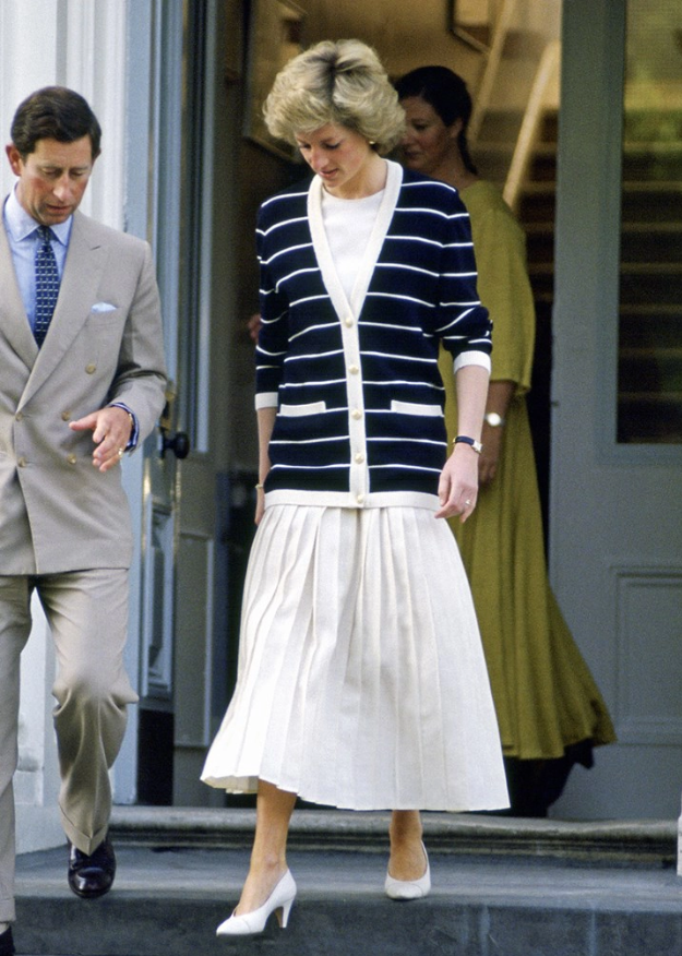 Đây là kiểu phối cho những ngày cần sự trang trọng. Nhưng một lần nữa, đây là kiểu kết hợp kén dáng, chỉ dành cho những ai có chiều cao lý tưởng. Chú ý chiếc áo lót bên trong không để hở đường ngực của Công nương Diana chúng ta sẽ thấy sự thanh lịch được chú ý từ chi tiết nhỏ như thế nào.