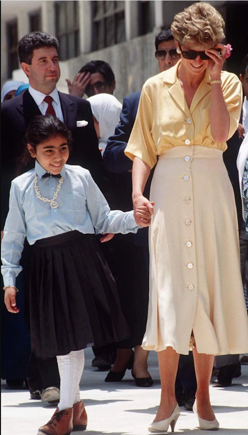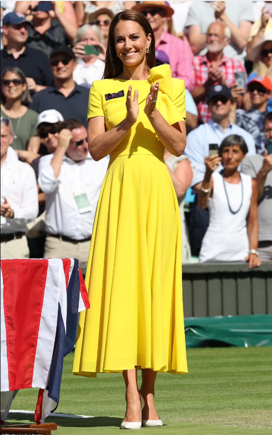 Set đồ này Công nương Kate cũng vừa mới cân rất tốt không thua mẹ chồng, mặc nguyên cây vàng sáng và đi cùng giày trắng để làm dịu thị giác. Áo khoác dáng crop của Công nương Diana tôn vòng eo. Đôi lúc chúng ta cần sự nổi bật hoặc cần một chút vui vẻ nâng mood thì đừng ngần ngại mặc thật tươi sáng nhé!