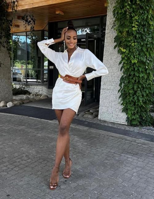 Bộ váy tiếp theo được khen ngợi là bộ mà Lalela mặc vào ngày thứ bảy. Kiểu váy trắng tối giản với phần trên như áo sơ-mi này đang rất được ưa chuộng vào mùa Hè 2022, ai cũng có thể mặc, kết hợp với thắt lưng bản to hay nhỏ hay dây lưng điệu đều đẹp.