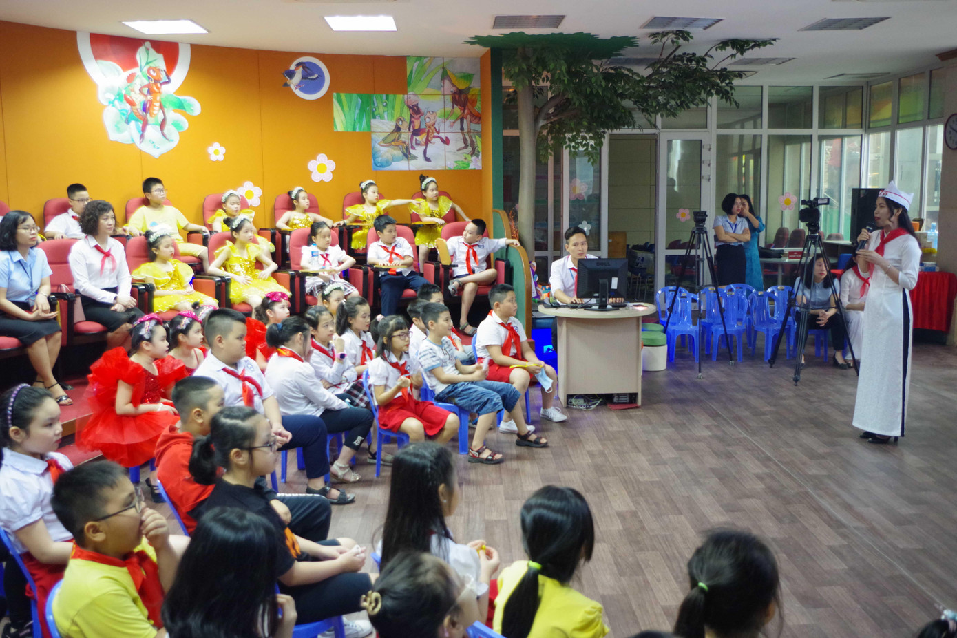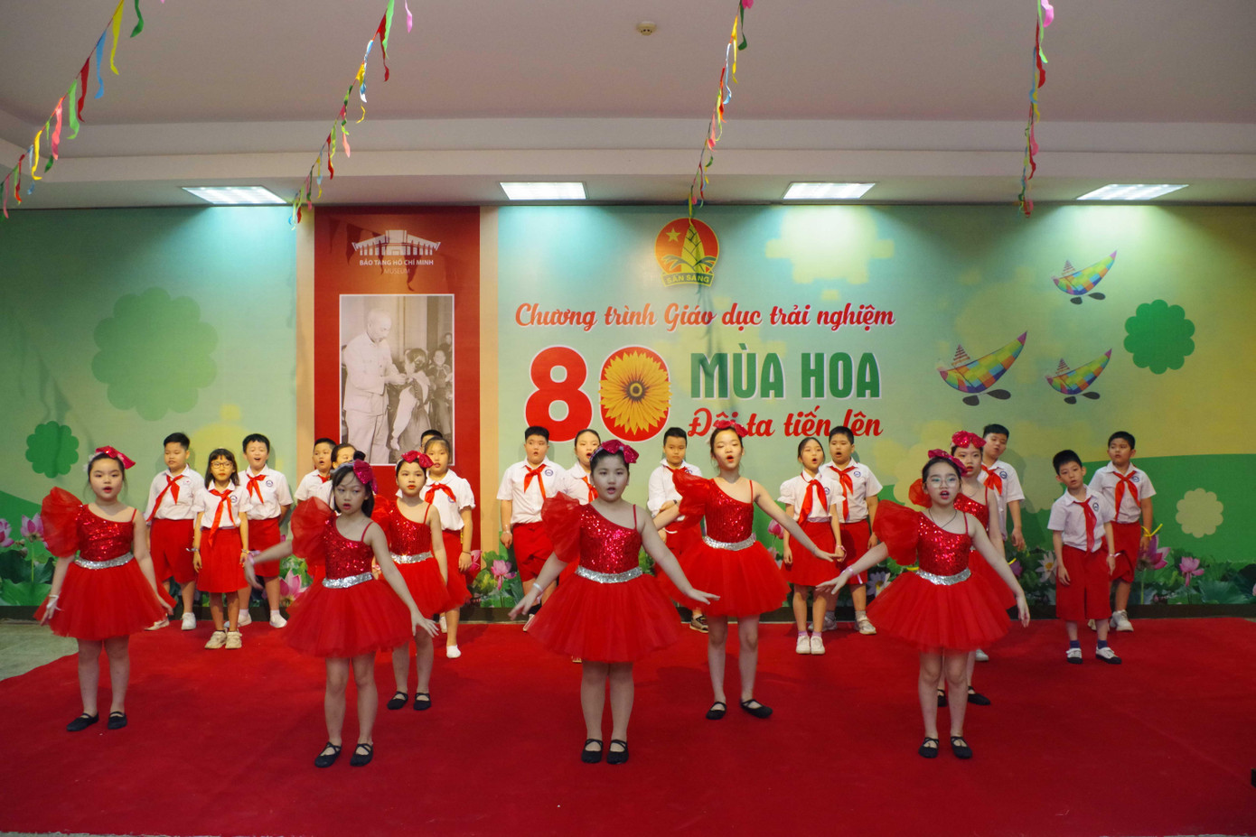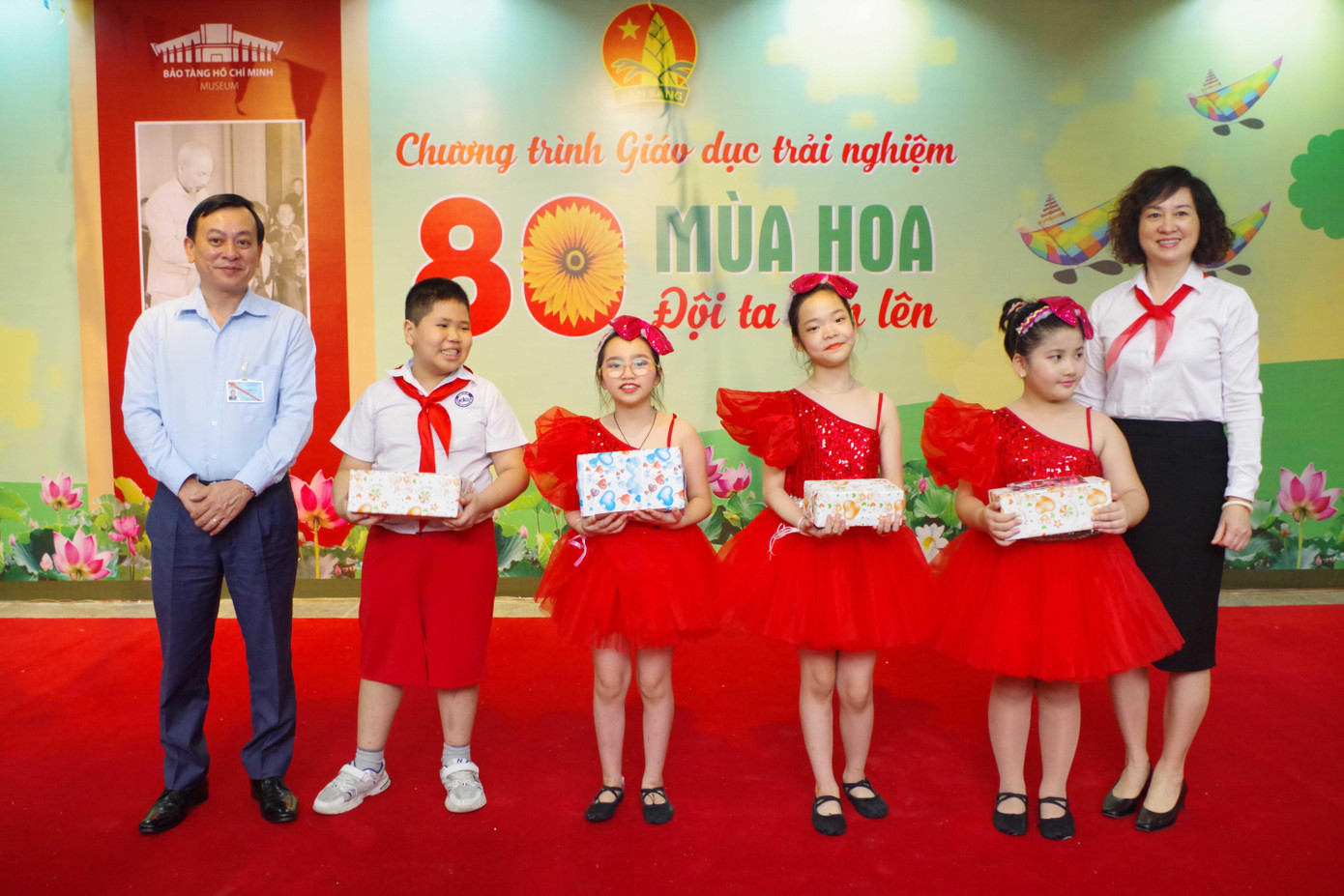 Chương trình giáo dục trải nghiệm 80 mùa hoa - Đội ta tiến lên diễn ra tại Không gian khám phá, Bảo tàng Hồ Chí Minh với sự tham gia của ông Vũ Mạnh Hà - Giám đốc Bảo tàng, các thầy cô giáo đại diện Ban giám hiệu trường Tiểu học Chu Văn An, trường tiểu học Tô Ngọc Vân cùng các em học sinh lớp 3E trường Tiểu học Chu Văn An.