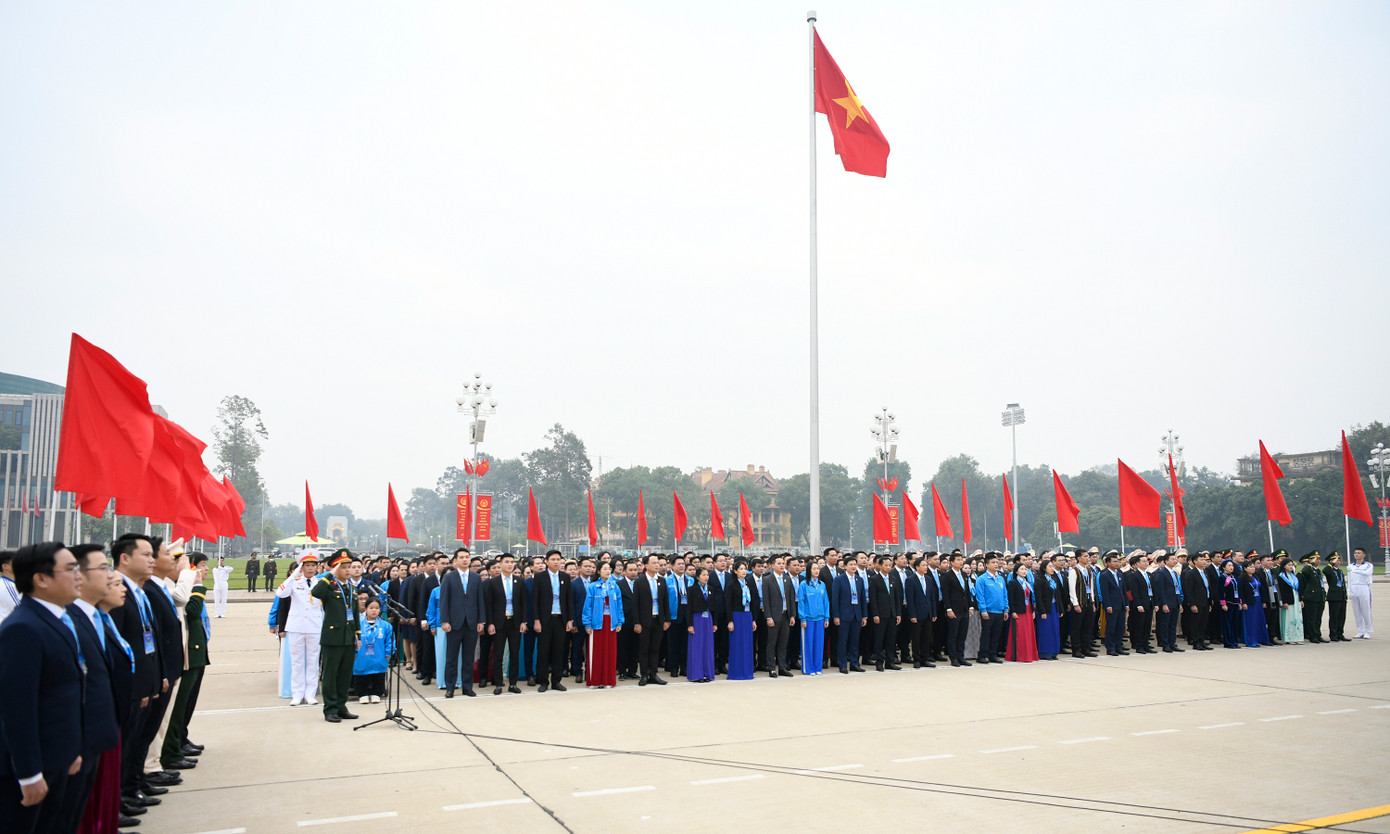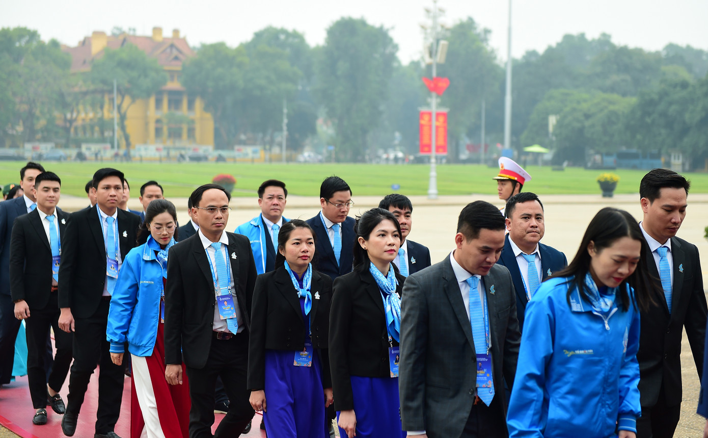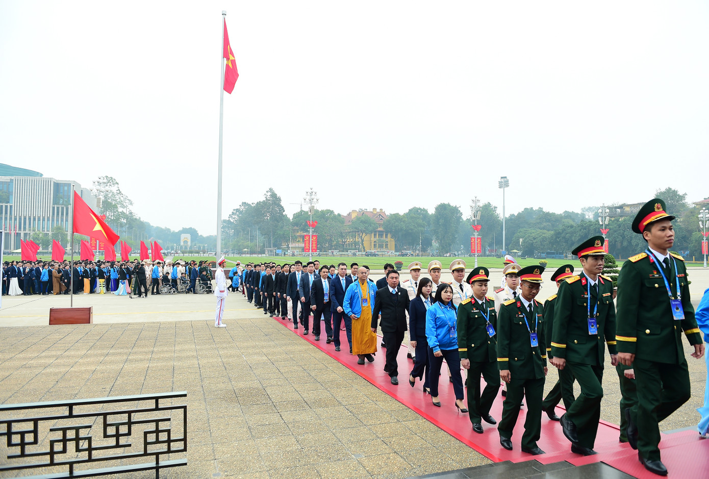 Đoàn đại biểu thành kính, dâng vòng hoa vào Lăng viếng Chủ tịch Hồ Chí Minh. Vòng hoa mang dòng chữ: "Đời đời nhớ ơn Chủ tịch Hồ Chí Minh vĩ đại".