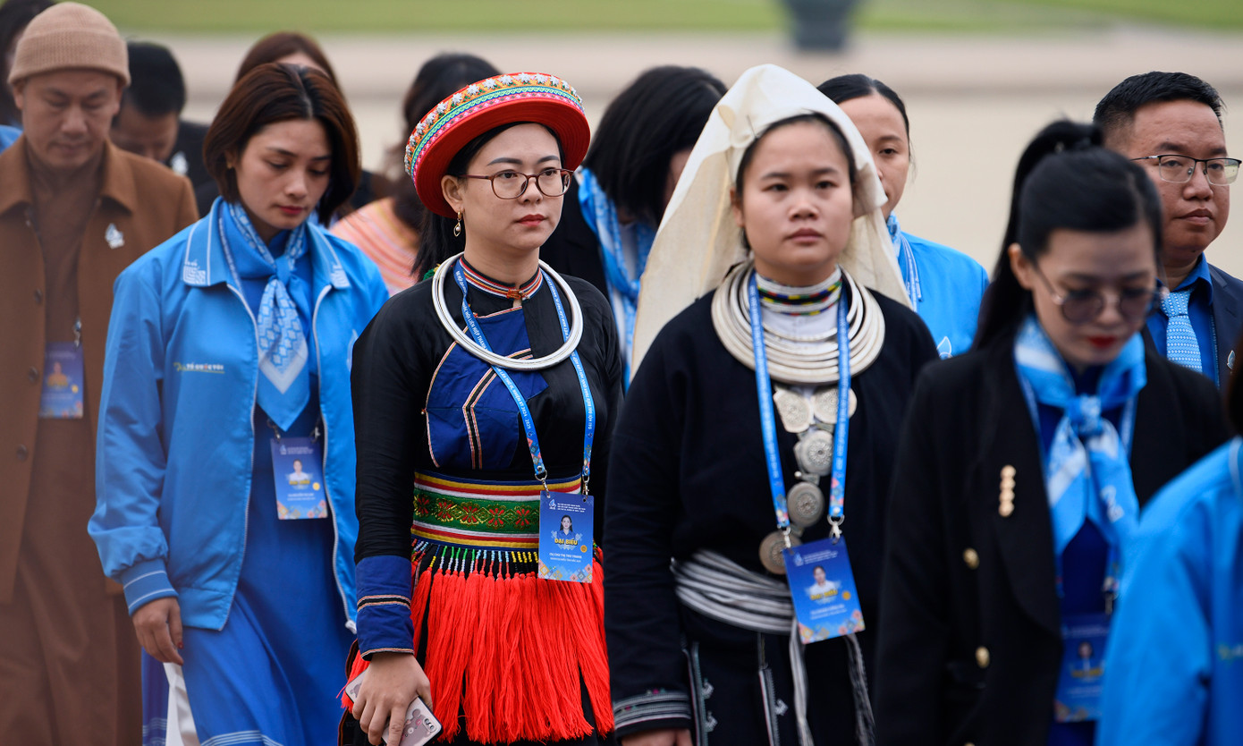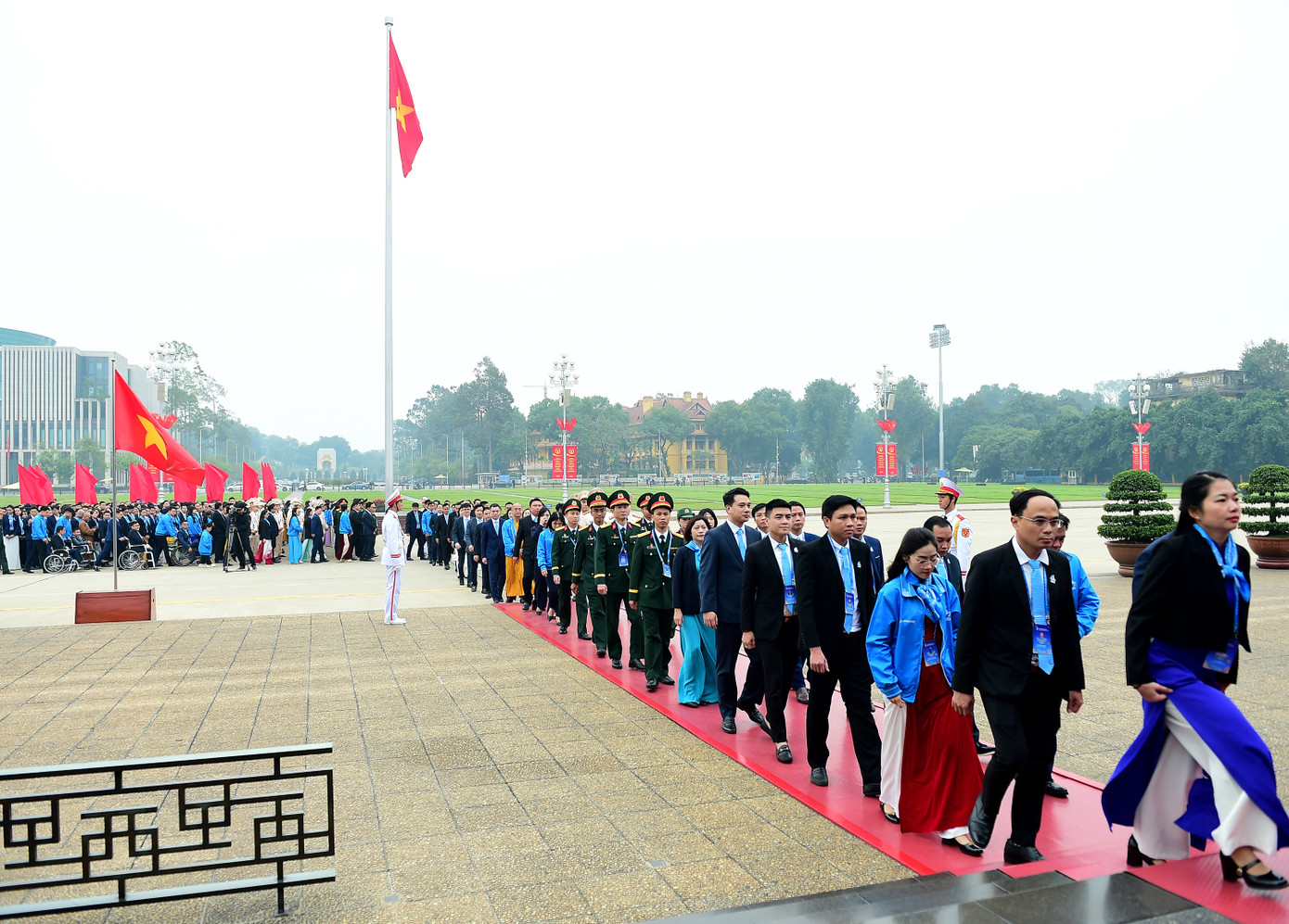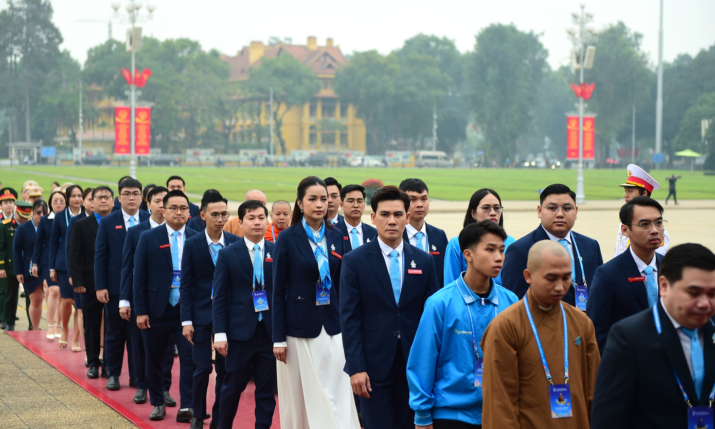 Đoàn đại biểu thành kính, dâng vòng hoa vào Lăng viếng Chủ tịch Hồ Chí Minh. Vòng hoa mang dòng chữ: "Đời đời nhớ ơn Chủ tịch Hồ Chí Minh vĩ đại".