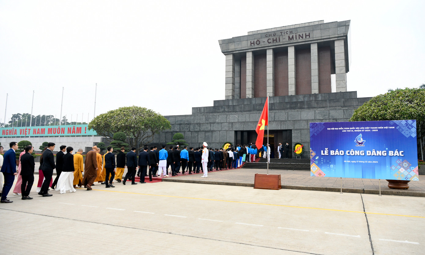 Sáng 17/12, Đại hội Hội LHTN Việt Nam toàn quốc lần thứ IX, nhiệm kỳ 2024 – 2029 trước khi khai mạc, đã làm lễ báo công và vào Lăng viếng Chủ tịch Hồ Chí Minh, đặt vòng hoa và dâng hương tưởng niệm các Anh hùng, Liệt sĩ tại Đài tưởng niệm đường Bắc Sơn.