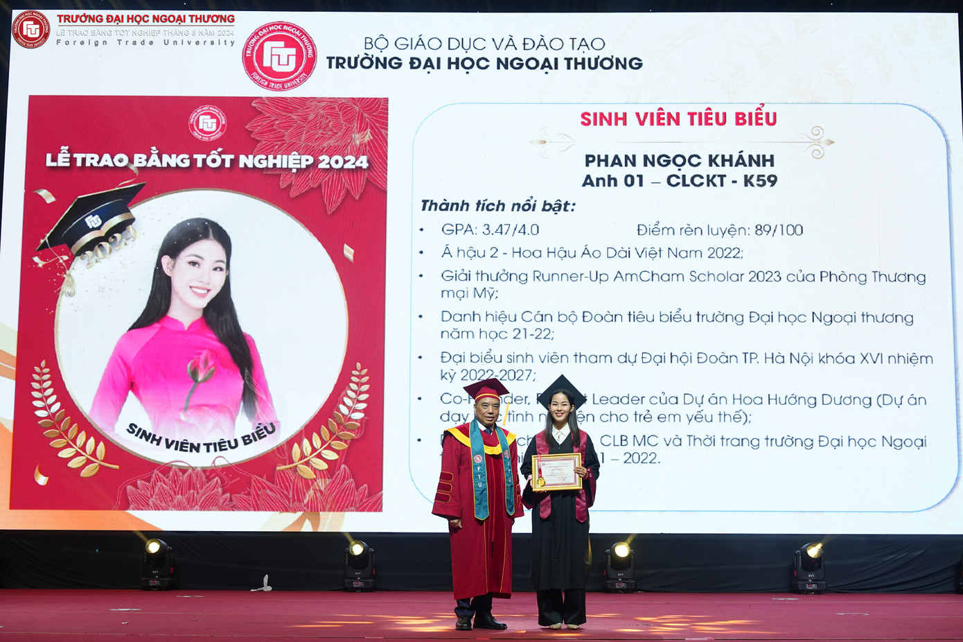 Từng là học sinh giỏi của trường THPT Lương Thế Vinh, Phan Ngọc Khánh dễ dàng thi vào trường Đại học Ngoại thương, chuyên ngành kinh tế đối ngoại hệ chất lượng cao và được đánh giá là một trong những ứng cử viên nặng ký cho chiếc vương miện Hoa hậu áo dài Việt Nam 2022.