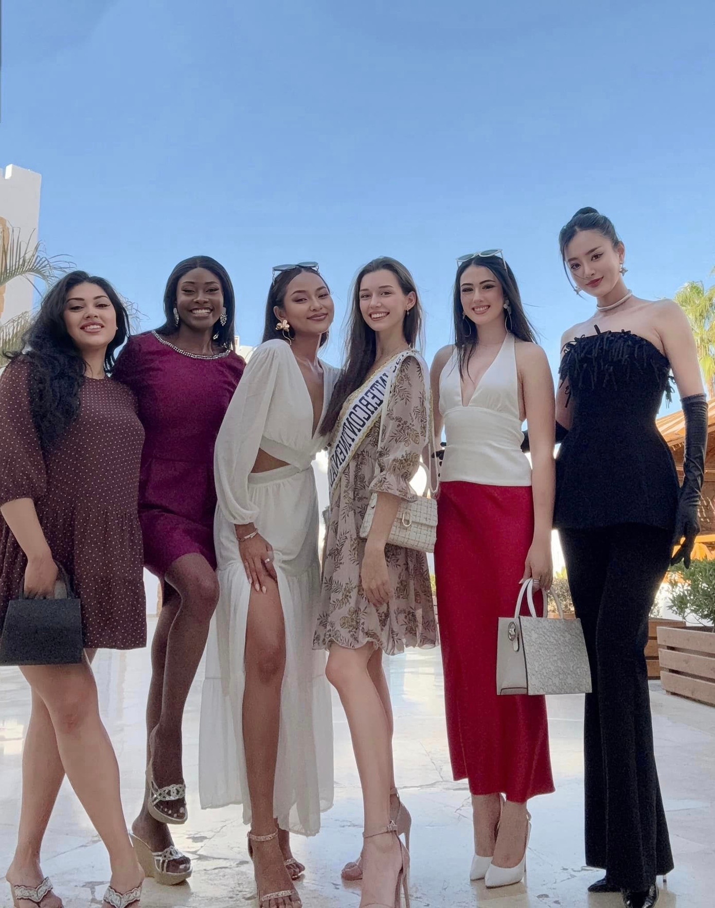 Bỏ qua sự cố quên sash ở nhà, Á hậu Bùi Khánh Linh vẫn giữ được tinh thần vui vẻ tươi tắn, gu thời trang nổi bật so với các thí sinh khác. Nàng hậu cũng tạo dáng rất sành điệu, nhiều bức ảnh nhìn như chụp thời trang chứ không đơn thuần là chụp kỷ niệm.