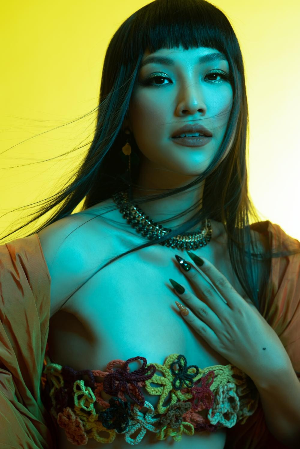 Thần thái của Hoàng Oanh như muốn thông báo một tuyên ngôn mới về người phụ nữ tự tin, biết yêu bản thân và dám đối đầu thử thách.