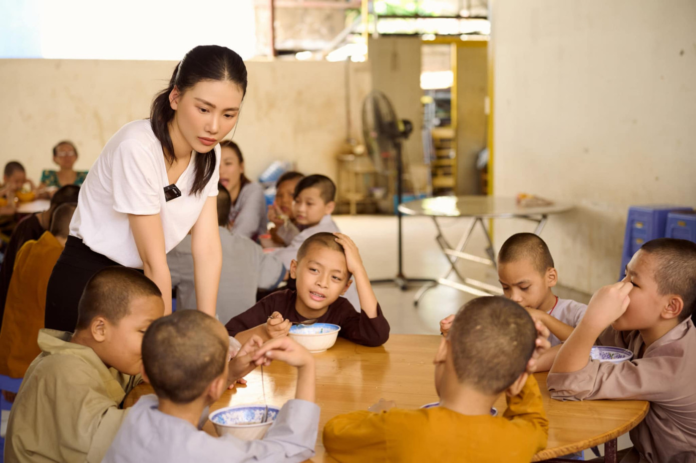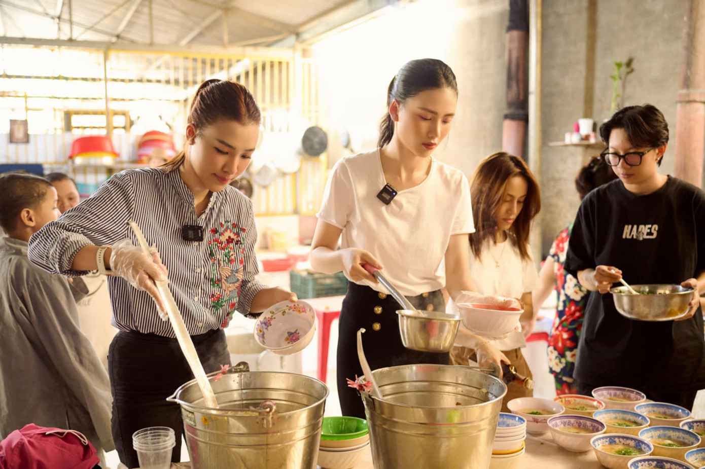 Tiếp tục hành trình thiện nguyện với series Hoa yêu thương, Bùi Quỳnh Hoa cùng Á hậu Hoàng Oanh đến với mái ấm trong chùa Từ Hạnh tại quận Bình Tân, TP. HCM, nơi có gần 150 cụ già và em nhỏ đang sinh sống. Cả hai đã cùng nhau vào bếp chuẩn bị món súp cho mọi người với rất nhiều nguyên liệu như: Thịt cua, thịt gà, bắp, nấm, trứng cút, rau củ.