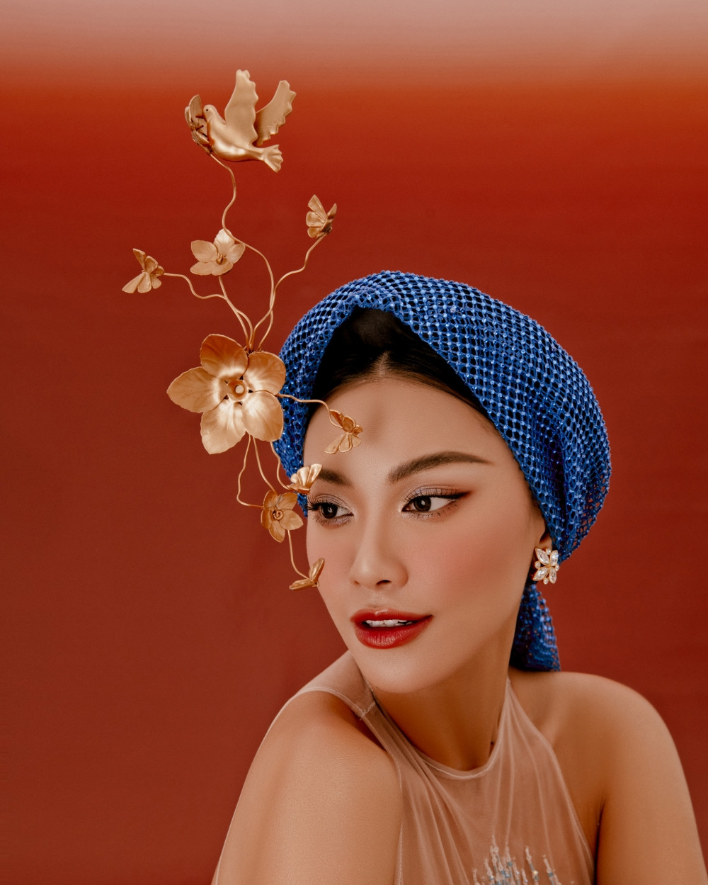 Để kỷ niệm một năm nhiều niềm vui và hạnh phúc cũng như đánh dấu sự khởi điểm rực rỡ cho năm mới, Á hậu Kim Duyên tung bộ ảnh chào Xuân Quý Mão, lấy ý tưởng dựa trên hình ảnh người phụ nữ truyền thống duyên dáng và xinh đẹp trong chiếc khăn mỏ quạ.