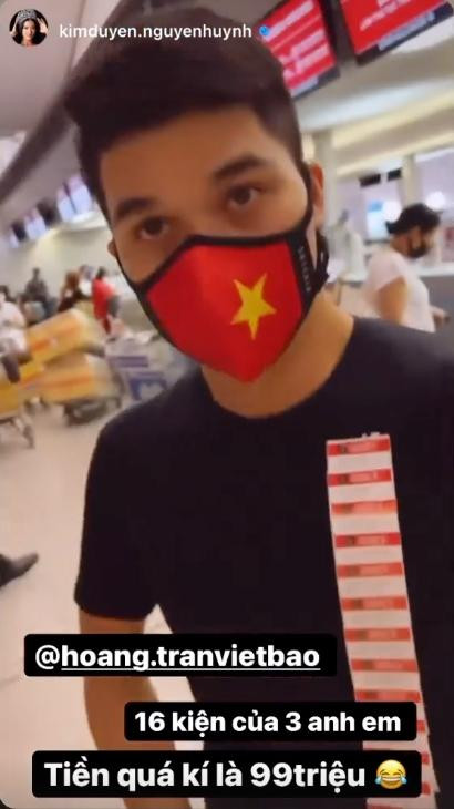 Theo như chia sẻ của Á hậu Kim Duyên, CEO Bảo Hoàng đã phải đóng tới 99 triệu đồng tiền quá cân cho 16 kiện hành lý của 3 người. Trong đó riêng Á hậu Kim Duyên là 9 kiện hành lý.