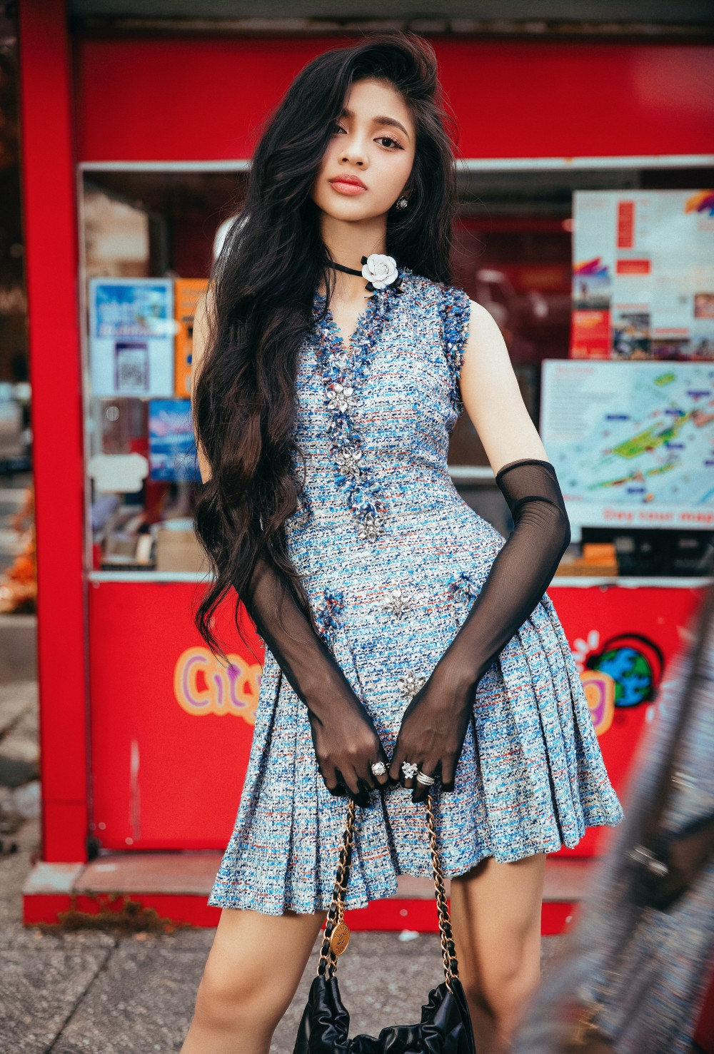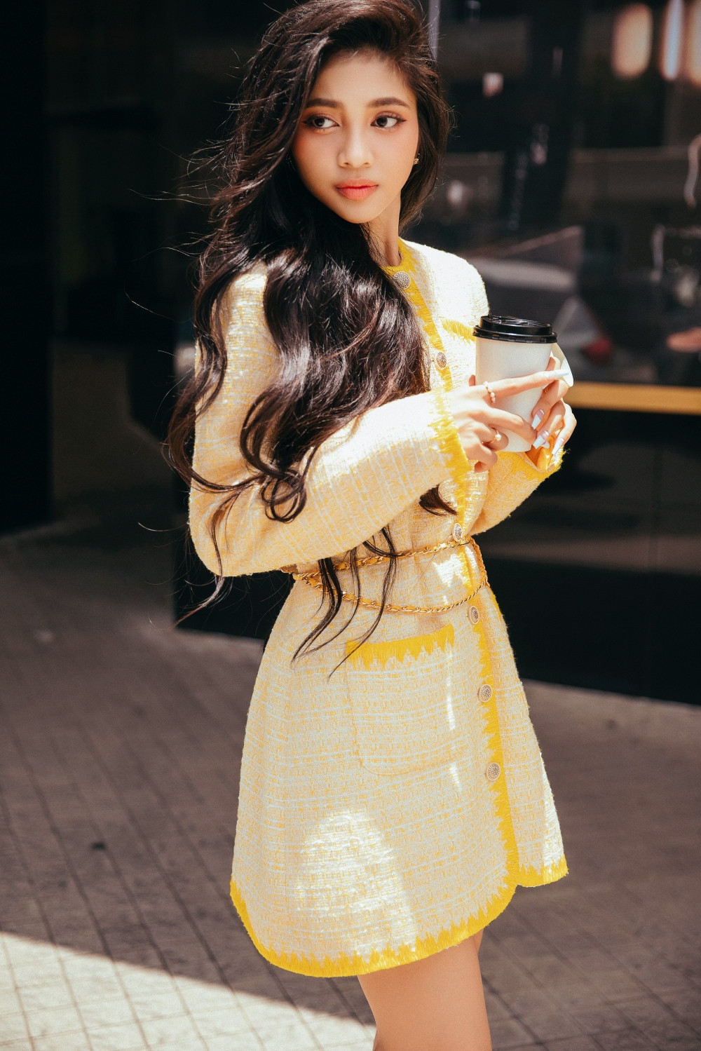 Trong các thiết kế mini dress khoe chân dài hay phom váy chữ A tôn đường cong, Minh Kiên đều thể hiện được ưu thế về hình thể. Lối trang điểm nhấn vào cặp mắt to tròn, kết hợp cùng mái tóc dài tạo kiểu tỉ mỉ càng giúp diện mạo nàng Á hậu thêm thu hút.