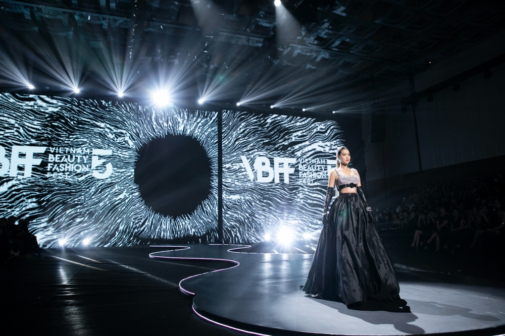 Trong đêm trình diễn Vietnam Beauty Fashion Fest 5, thuộc khuôn khổ cuộc thi Miss Grand Vietnam 2023, Á hậu Minh Kiên có phần mở màn (first face) cho BST Glorious của NTK Hoàng Tony cùng hai Á hậu Trần Tuyết Như và Trần Nguyên Minh Thư.