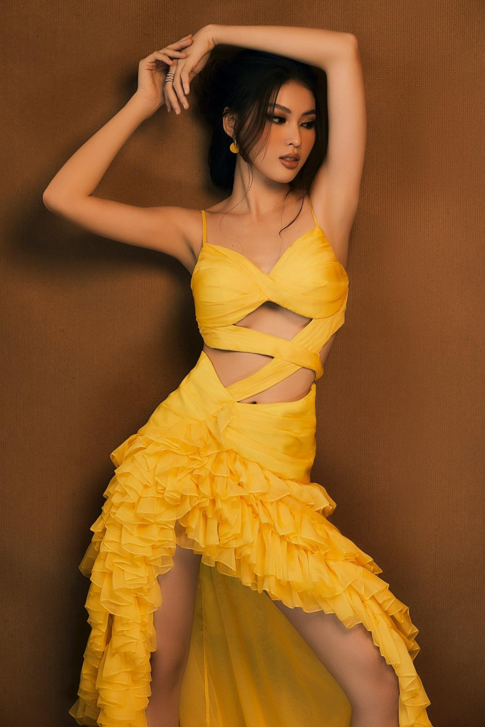 Với hình thể hoàn hảo, Ngọc Thảo dễ dàng “cân đẹp” các thiết kế cắt xẻ táo bạo, khoe khéo vòng eo thon gọn.
