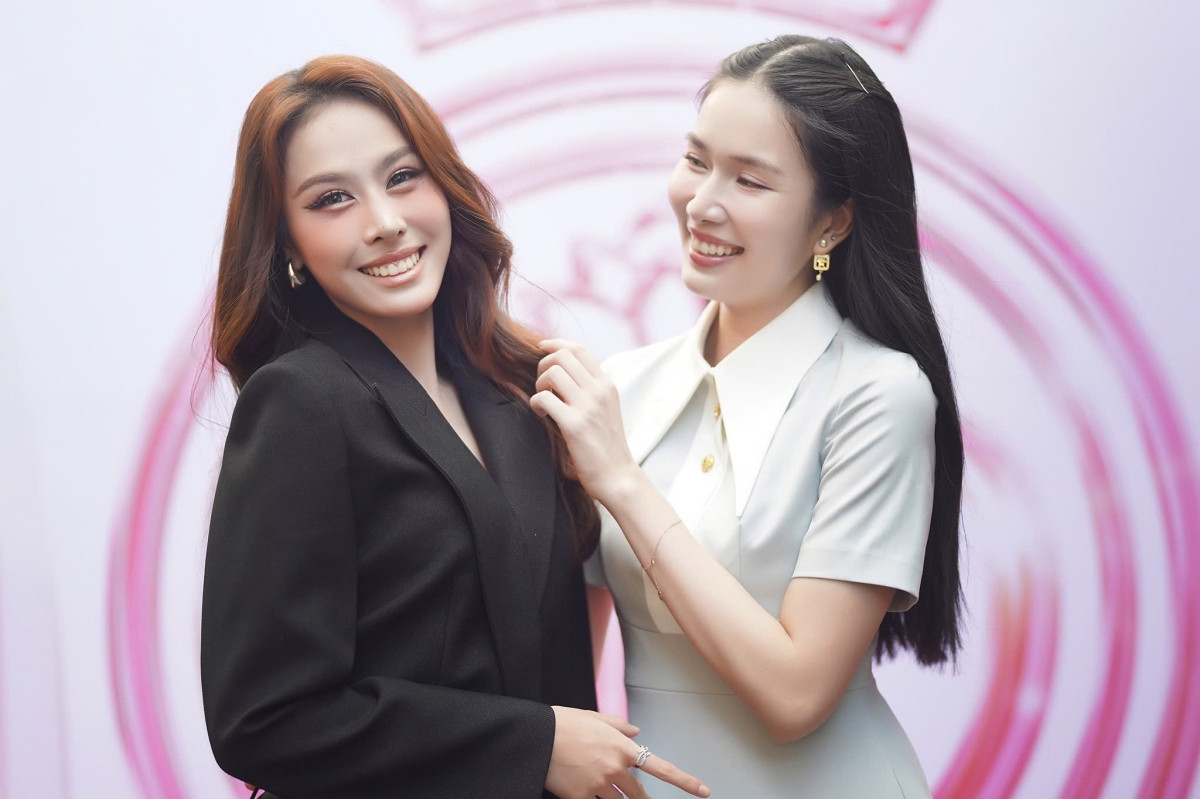 | Á hậu Ngọc Hằng và Á hậu Phương Anh thân thiết tại sự kiện. |