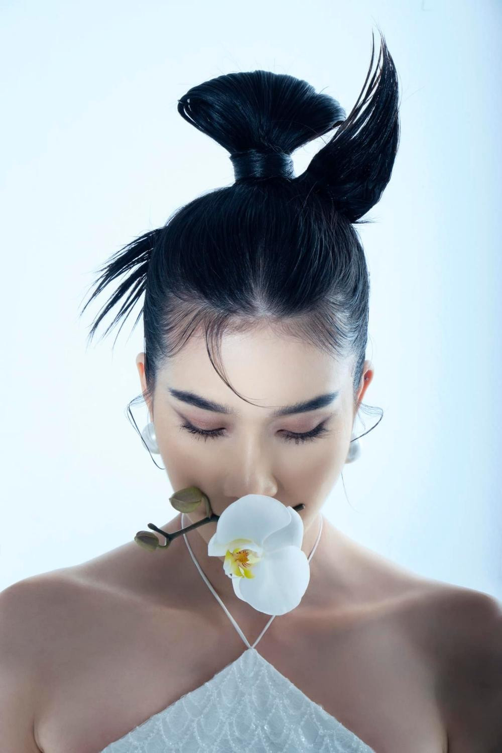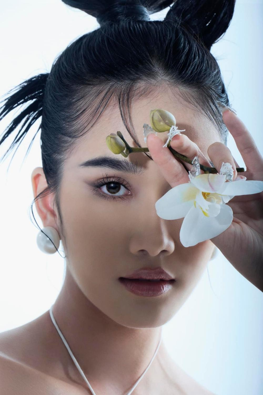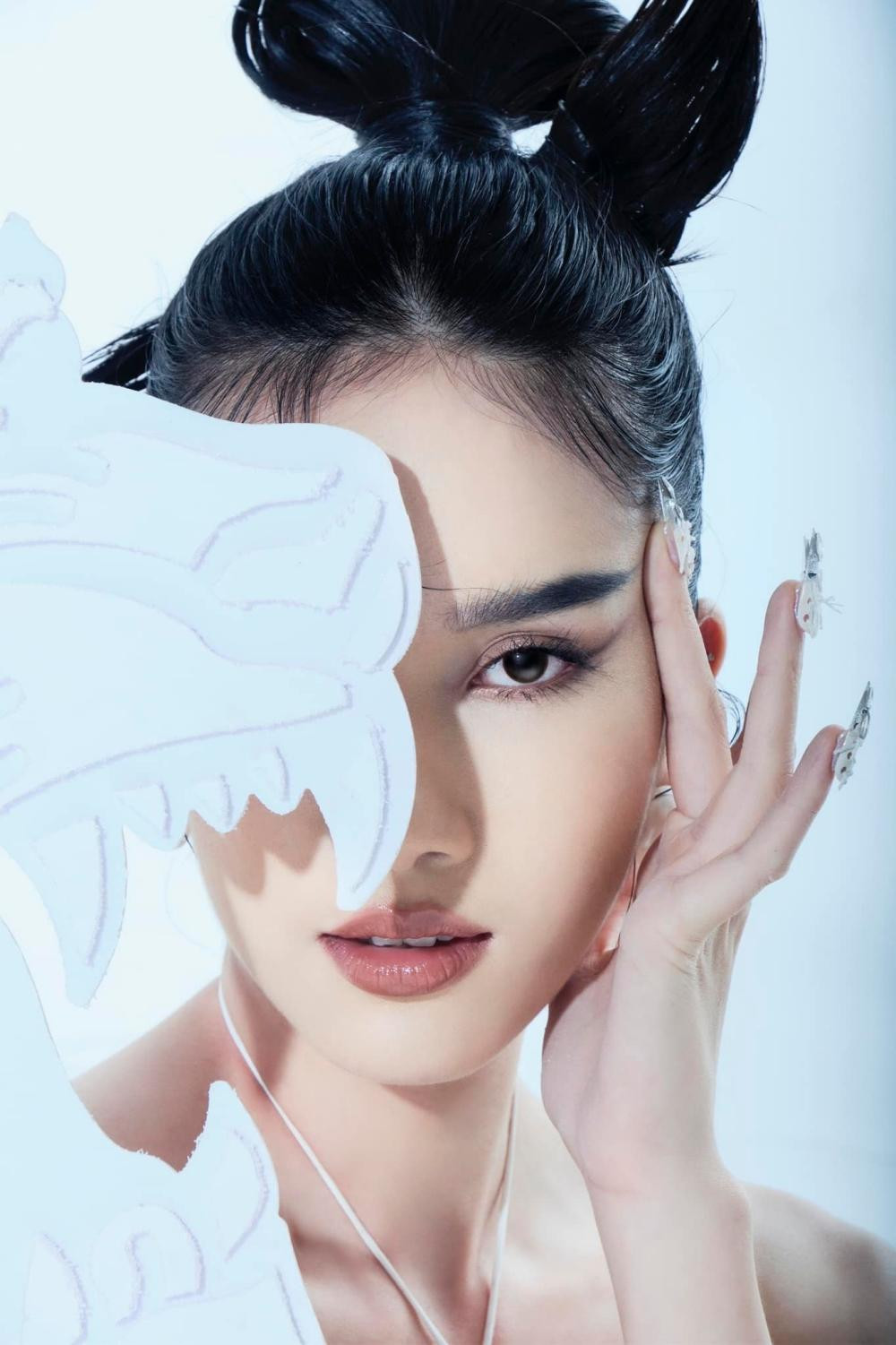 Chào đón năm mới Nhâm Dần 2022, không giống như đa số các người đẹp Việt chọn áo dài và các gam màu Tết đặc trưng là đỏ và vàng, Á hậu Phương Anh chọn trang phục mang hơi hướng dạ hội và gam trắng tinh khiết cho bộ ảnh Tết. Người đẹp chụp cùng hình ảnh chú hổ dũng mãnh, cầm hoa lan trắng, trang điểm và làm tóc đậm chất Á Đông.