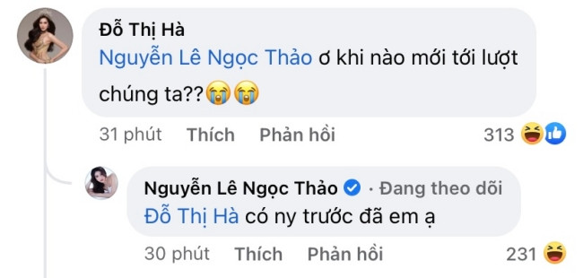 Người hâm mộ đều gửi lời chúc mừng tới cặp đôi trai tài gái sắc và thể hiện sự mong chờ vào một đám cưới lãng mạn trong thời gian sắp tới. Á hậu Nguyễn Lê Ngọc Thảo đã nhanh tay đăng ký một slot đi bưng quả cho lễ ăn hỏi của Á hậu Phương Anh. Trong khi đó, Hoa hậu Đỗ Thị Hà thì thể hiện rõ bản thân cũng mong muốn được lấy chồng sớm. Cô tag Á hậu Ngọc Thảo vào phần bình luận và viết: "Ơ khi nào mới tới lượt chúng ta??". Ngọc Thảo liền phũ phàng đáp trả Đỗ Hà: "Có người yêu trước đã em ạ". Cư dân mạng đều cười "té ghế" trước màn đối đáp của hai người đẹp và khuyên Đỗ Thị Hà nên đăng ký suất đi bưng quả cho Phương Anh xem ra dễ thực hiện hơn là lấy chồng lúc này.