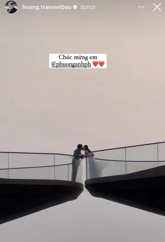 Trước đó ít phút, CEO Bảo Hoàng cũng tiết lộ khoảnh khắc Á hậu Phương Anh và doanh nhân Đức Hồ trao nhau nụ hôn ngọt ngào. Anh đăng kèm dòng caption: "Chúc mừng em, Phương Anh".